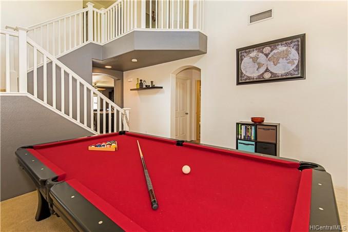 Fabulously upgraded home in Ocean Pointe with a full bedroom and bath on the ground level, an amazing chic designer-inspired kitchen, and a meticulously designed and landscaped backyard with a flowing, contoured concrete patio for entertaining and enjoying the tropical backyard oasis. Plantation shutters throughout, spacious master bedroom with vaulted ceilings and located on a quiet street.