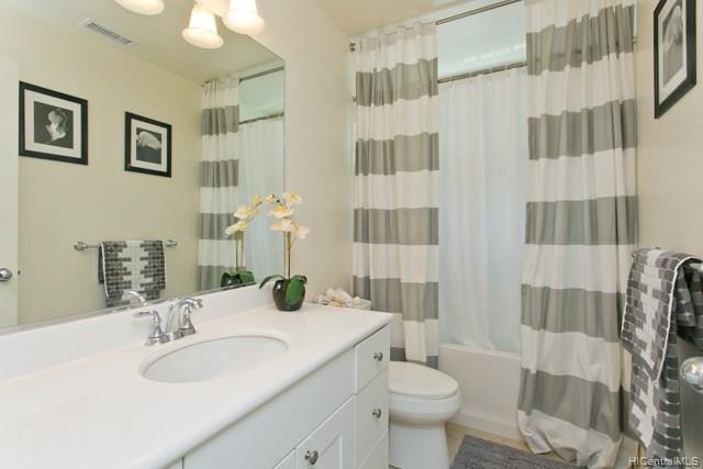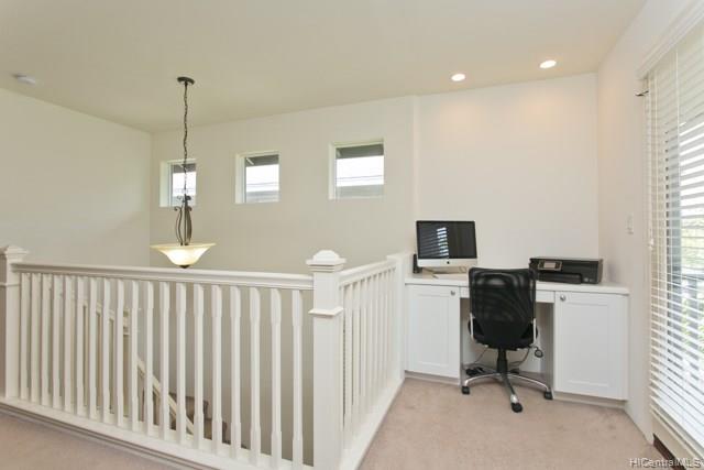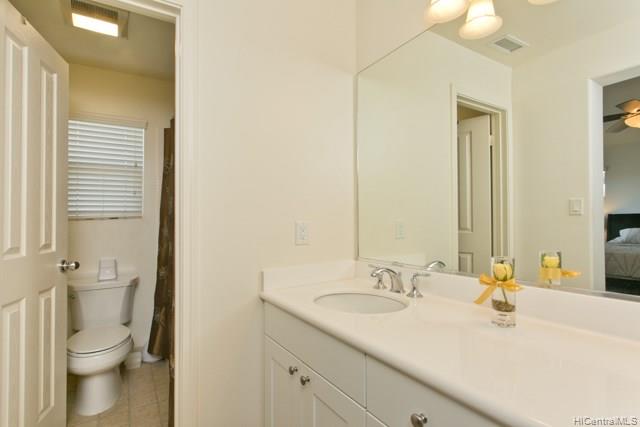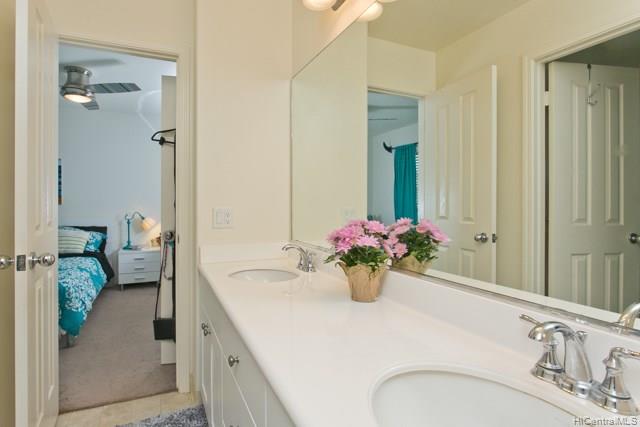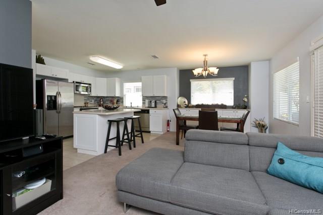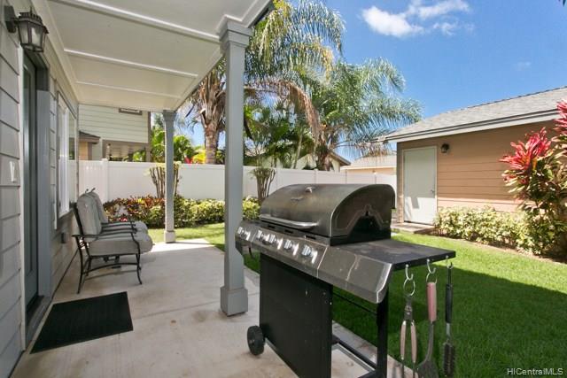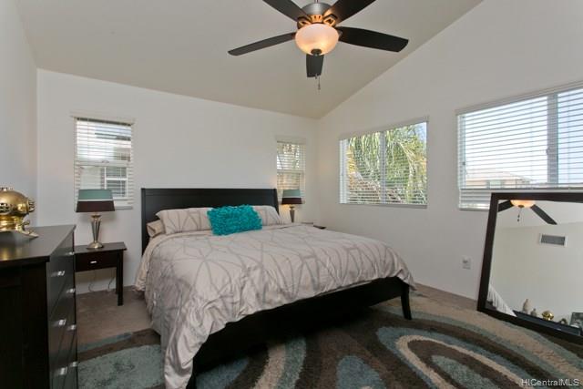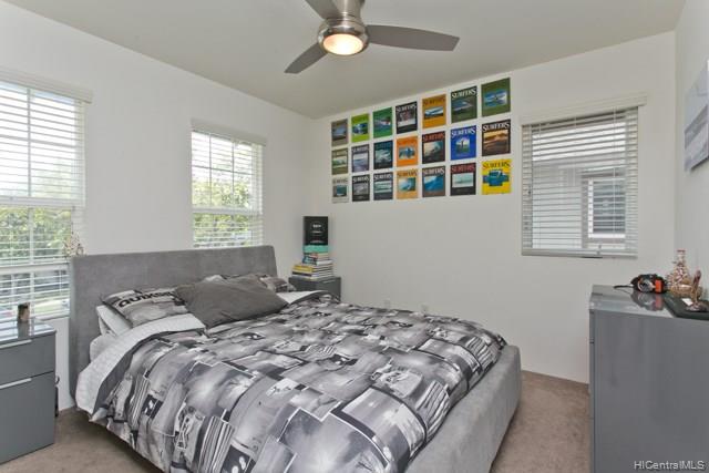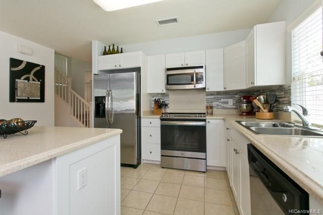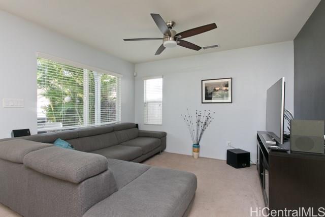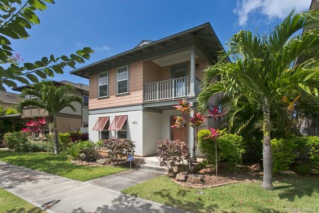 Rare 3 CAR PARKING in Ka Makana at Hoakalei! Single family 4 bdrm/3bath with 1 bdrm/1 full bath downstairs. Jack & Jill bathroom and desk area upstairs that leads out to the second floor lanai. Home also has ceramic tile, some carpet, open kitchen w/island, stainless steel appliances to include a BRAND NEW stove, central A/C, solar water heater & beautifully landscaped yard w/sprinkler system. 26 leased PV panels to be transferred to the new owner. Walking distance to Club House, Community pool, BBQ, Gym, & Tennis Court, Close to the beach, school, restaurants & shops.