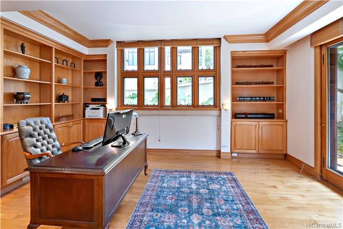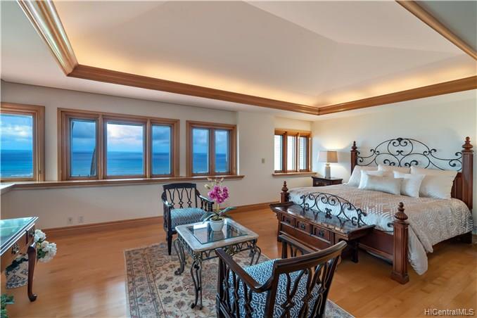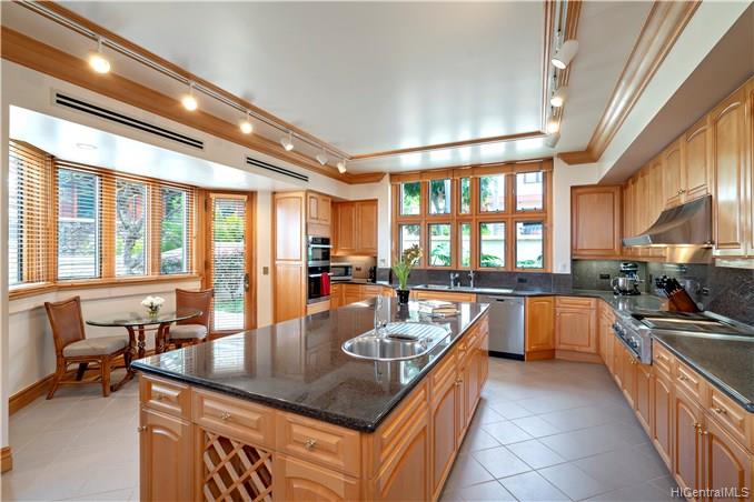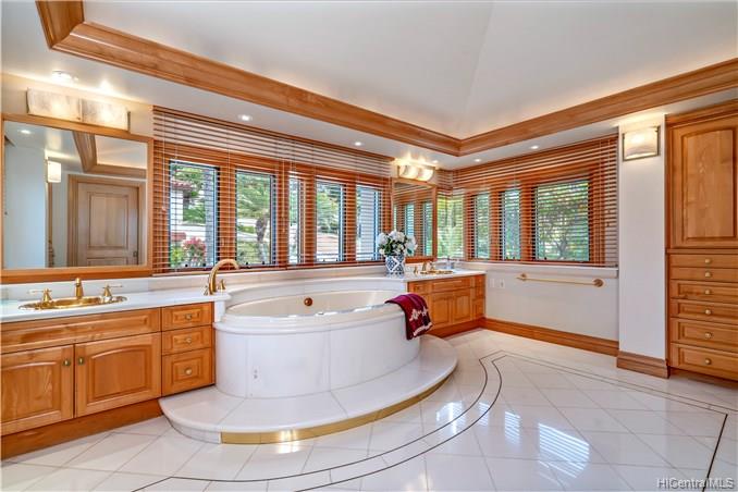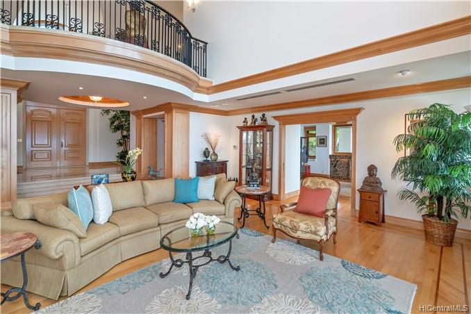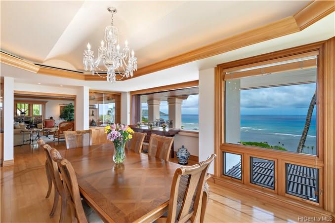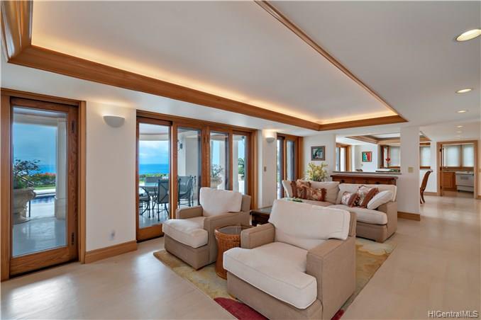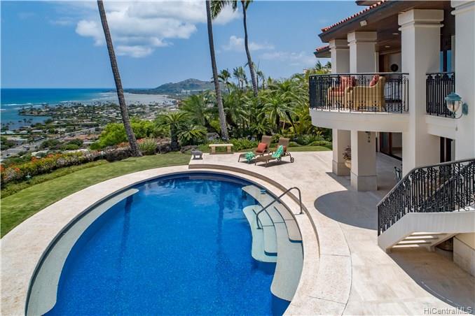 OCEAN PANORAMIC VIEWS from custom built, award-winning home situated on over 1/2 acre in Honolulu’s premier gated community – HAWAII LOA RIDGE. Luxurious interior and exterior finishes include Marron Imperial Marble, limestone and maple flooring with cherry inlays, teak and ash windows and natural stone tiles. 7,643 SF of beautifully appointed living spaces with sweeping 180-degree ocean views from Koko Head to Diamond Head, plus lanai areas totaling 1,312 SF. Gated driveway and tropical landscaping provide privacy for main residence and separate guest quarters above 3-car garage. On a desirable quiet street conveniently located on the first left after the gated entry into Hawaii Loa Ridge.