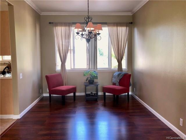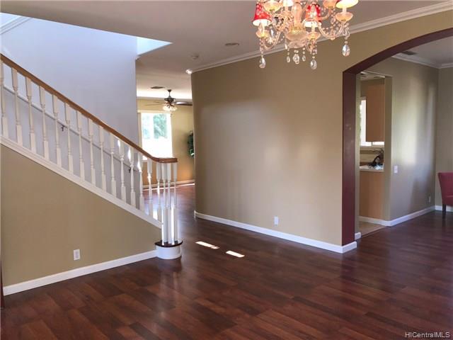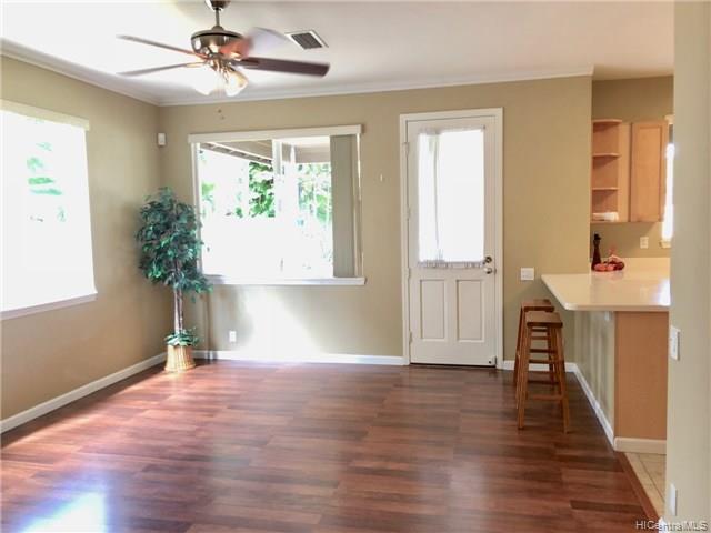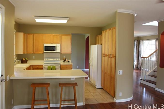 REDUCED PRICE!! Motivated Seller! Immaculately maintained 4 bdrm, 2-1/2 bath home ready for move-in! Wood flooring & new painting throughout; in excellent condition. Located in a quiet neighborhood with a large, fenced backyard & extensive covered Lanai is perfect for entertaining. Separate laundry room allows entry to the house from the garage and includes a wash sink and shelving. Spacious master bedroom with double-door entry, two wash basins, separate bath area, and a large walk-in closet. Solar hot water heater with new panels installed in 2018. Minutes from the new Kamakana Ali’i open-air mall, movie theaters, and restaurants. Comes with connected home technology including Nest Thermostat, Kevo Smartlock, and Chamberlin My Q-compatible Garage Door Opener. Actual lanai square footage is 322 but TMK records show 272.
