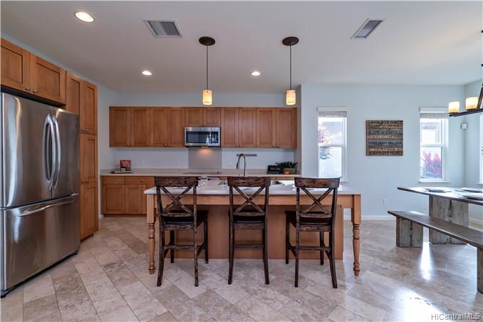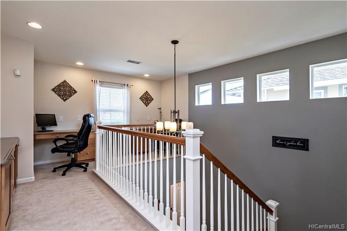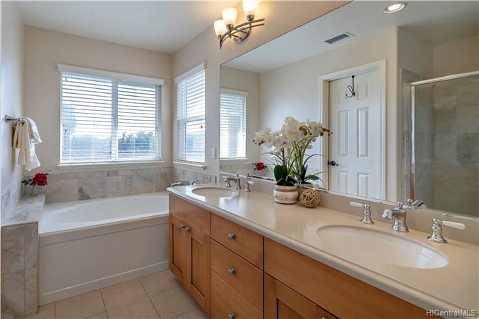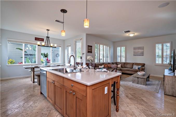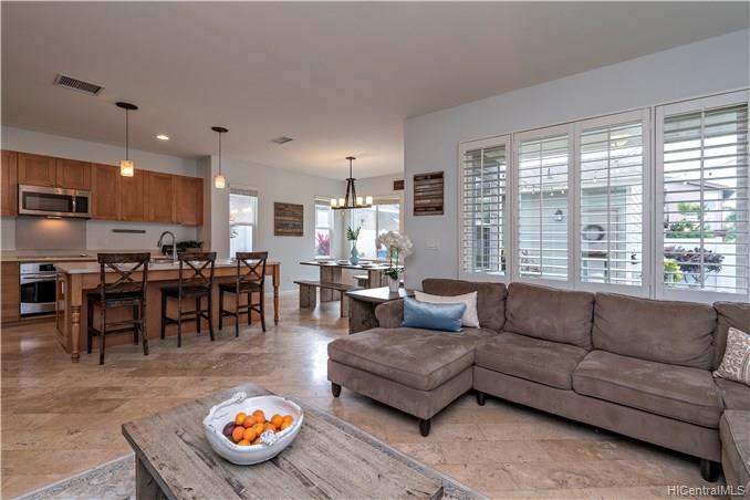 Welcome to the highly desired resort community of Ka Makana at Hoakalei. Start your days getting active on the tennis court or hitting the community gym. Head over to the Swim Club to cool off by the pool and unwind in the hot tub. Spend quality time with family and friends in your large open kitchen and enjoy cool evenings on your covered patio. This luxurious corner lot home features travertine tile throughout the downstairs, upstairs office space, sizeable kitchen island, stainless steel appliances and a beautifully landscaped yard.