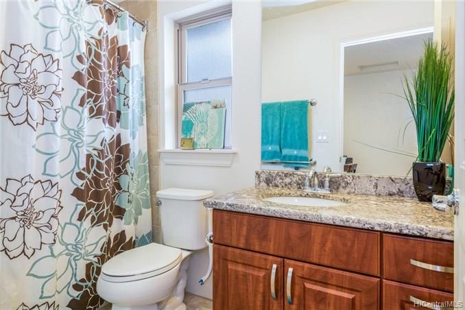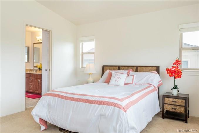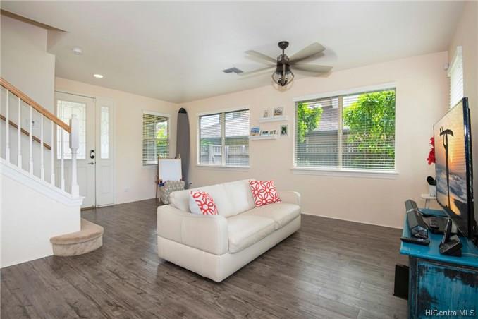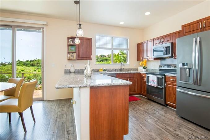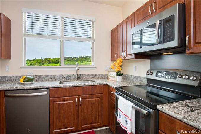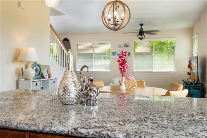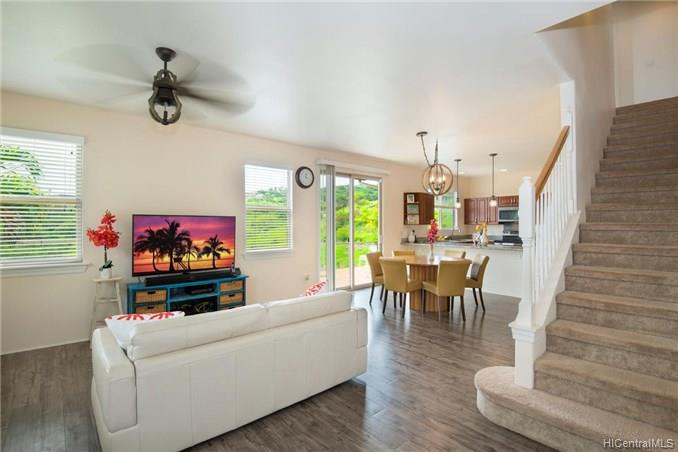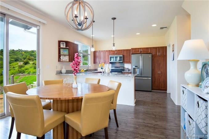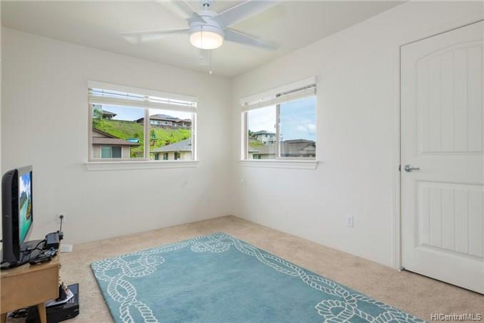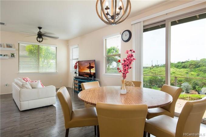 Home sits on the rim of Makakilo Valley. Property is located facing the valley for a sense of privacy and peacefulness. Ample for having your own space and creating the ultimate lifestyle. 28 OWNED PV panels to keep your electricity close to ZERO dollars! Stay cool with Central A/C and sporting high end Stainless steel appliances with granite counter tops in the kitchen and bathrooms. Great to show off to friends and family! Boasting a security system to protect the most important investment… your family and home! Come home and Relax and Enjoy drinks and fabulous sunsets right from your back lanai. Ask me how you can own this for as little as 0% down!