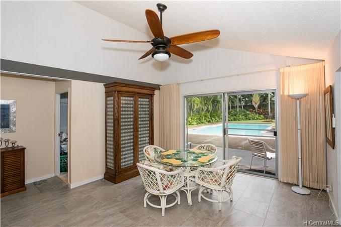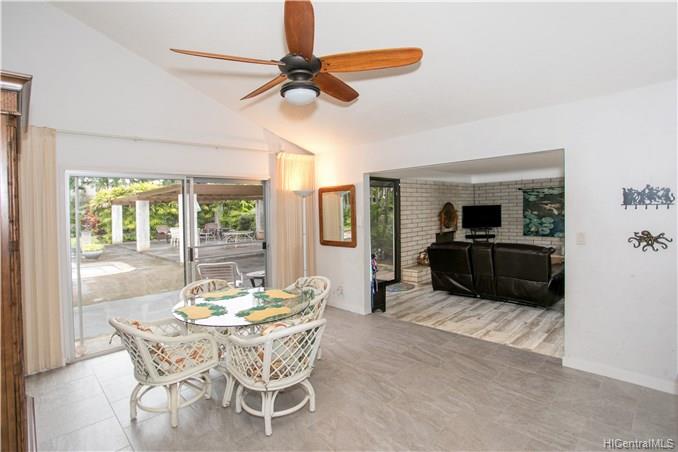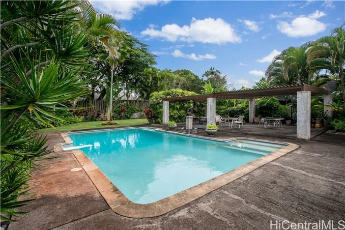Single level 4 bedroom home in Mililani! Located in a cul-de-sac, quiet with no through-traffic. Great yard space with over 12,000+ sq ft of land, fenced in yard and foliage for privacy. Dining room has sliding doors to swimming pool and yard, plenty of space to entertain! Kitchen is bright with natural light, upgraded stainless steel fridge, pantry for extra storage. Living room has vaulted ceiling for additional space. Home to be sold AS IS.