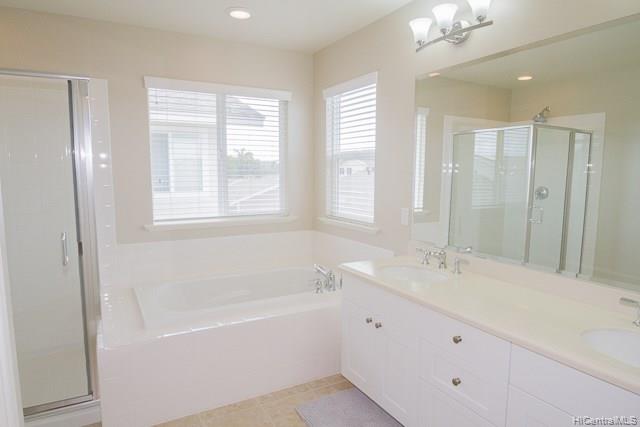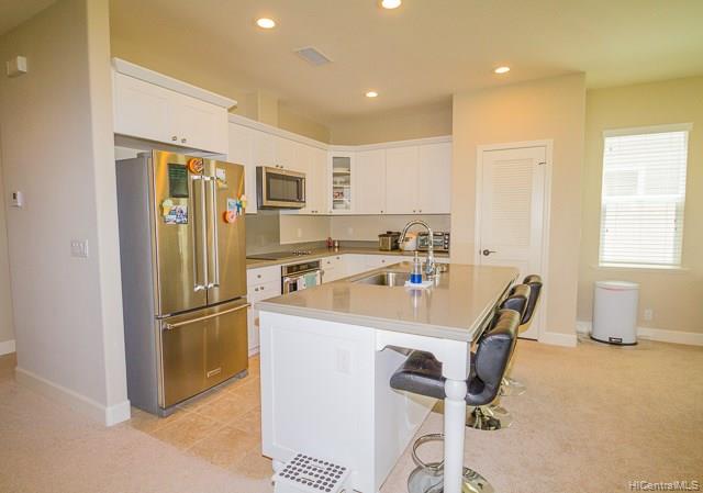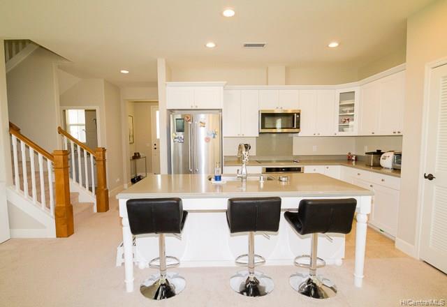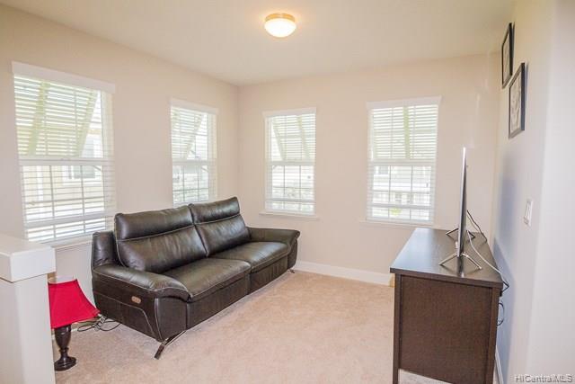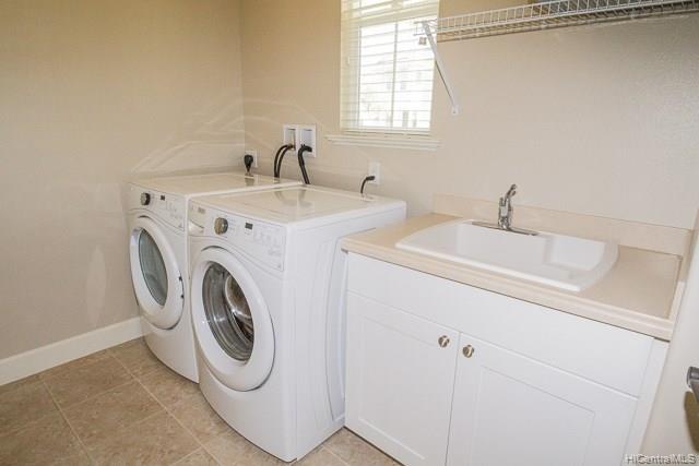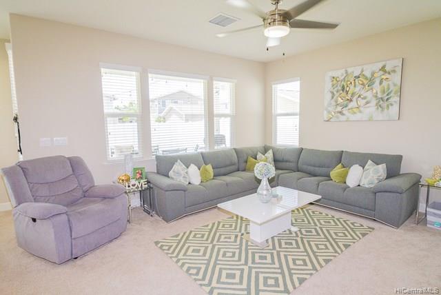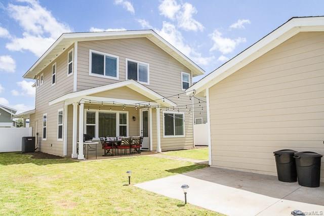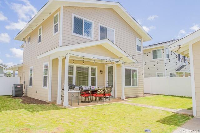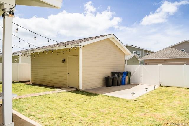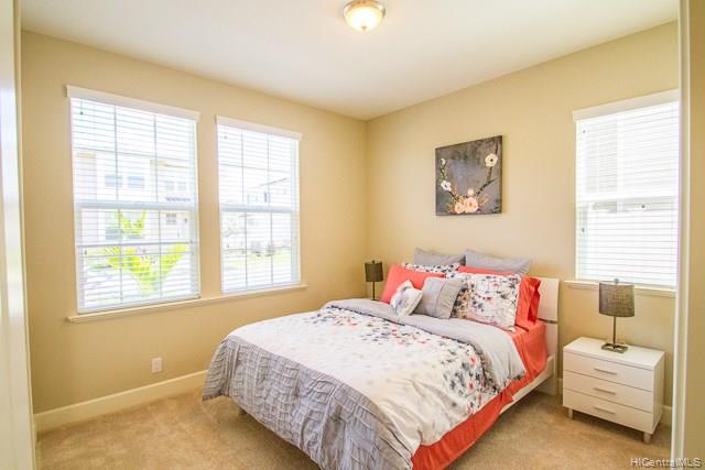 This 4 bedroom 3 bathroom home is located in the desirable neighborhood of Kuapapa at Hoakalei.This home features: stainless steel appliances, 1 bedroom & bathroom on the 1st floor, oversized landscaped lot w/sprinkler system.Upgrades include:quartz countertops (kitchen),upgraded wall paint,front yard gate,front load washer & dryer,reinforced TV wall mounts in the living room and master bedroom w/chase,and a 3rd car parking slab.Assoc Fee includes: cable, internet, phone, use of pool and private assess to the Wai Kai Hale Lagoon.