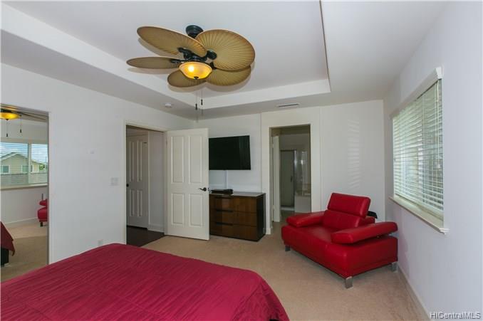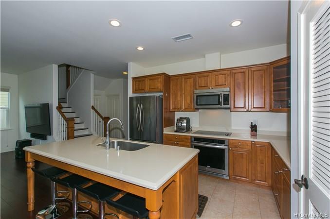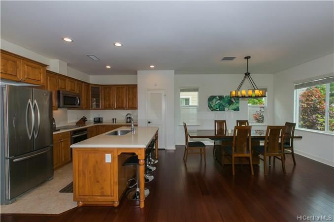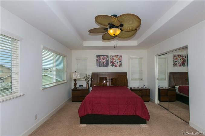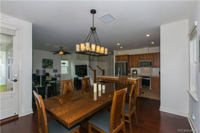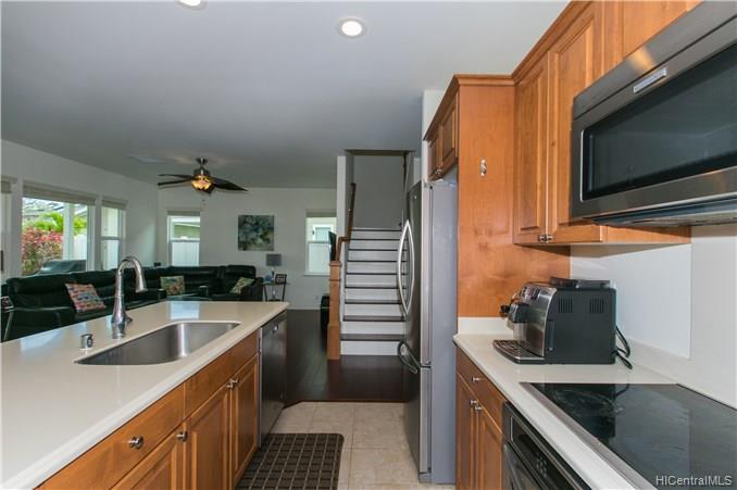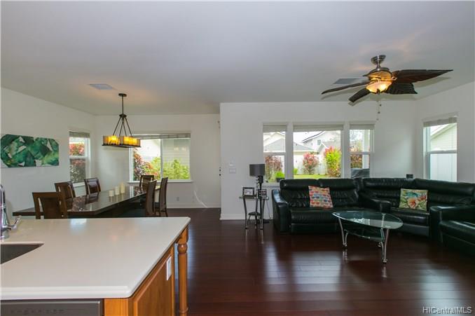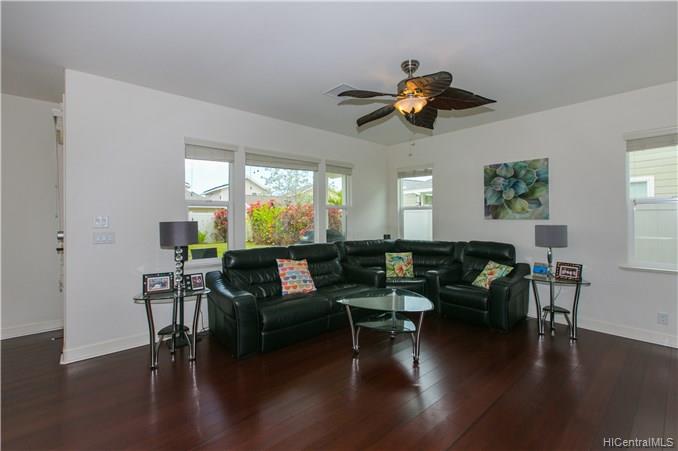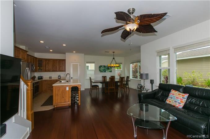 Welcome your family and guests to this CHARMING, PRISTINE 2 story, 4 bedroom / 3 bath single family home located in the desirable Kuapapa at Hoakalei Resort community. Relax in the comfort of this ready-to-move-in home that features a spacious open layout of the living space area, recessed lighting in the kitchen and hallways, beautiful island style ceiling fans in the living room and bedrooms, a front and back patio, and a detached 441 sq. ft garage. Large master suite has a full bathroom with dual sink, stand up shower, and bath tub. Upgraded bamboo floors on most of the 1st floor, stairs, 2nd floor hallway, and loft. This home is perfect with plenty of space for entertainment. Don’t miss out on the opportunity to see this property and all the great features that it offers!
