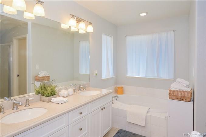 HUGE PRICE REDUCTION! Motivated Seller – Rarely available large corner lot 6, 179 sqft approx. Very well maintained 40.30 series home with 4 bedrooms, 2.5 baths located in Kamakana at Hoakalei. The home has a very nice flow to it – with a open kitchen, dining and living room. The living has been modified to make it “Huge” for entertaining. Master bedroom has walk in closet, master bath has separate shower, bath tub and double sinks. Large twin double doors open up into a patio from the living room – great for sitting out. Extra large lanai at the back. Features a office space upstairs. A extra parking stalls/gate can be created in the large yard. Dog park and numerous guest parking stalls located behind the home. Association fees include internet, phone & cable.