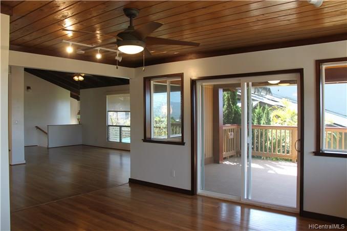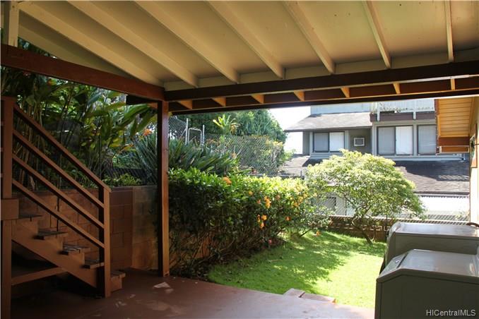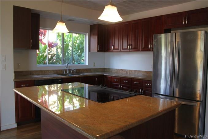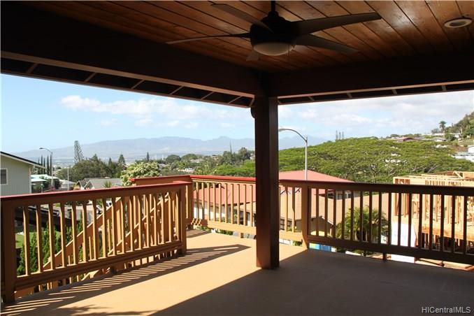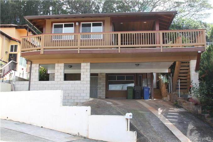 Well maintained cul-de-dac 4bd/3.5ba home on Halawa Heights. Home features an open floor plan, kitchen w/granite counter tops, vaulted ceilings & real wood flooring. Included is an in-law suite with full kitchen, stove and separate entry. 200 amp upgrade. 22 PV Panels. 220 outlet for an electric car. If view is what you are looking for relax out on the large lanai area w/sweeping views of mountain, neighborhood and some ocean view. Exit the back gate to trails that lead to Diamond Head and Oceans views.