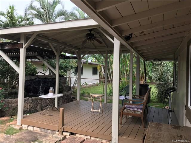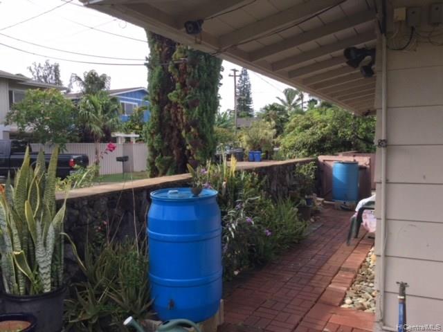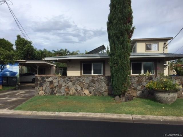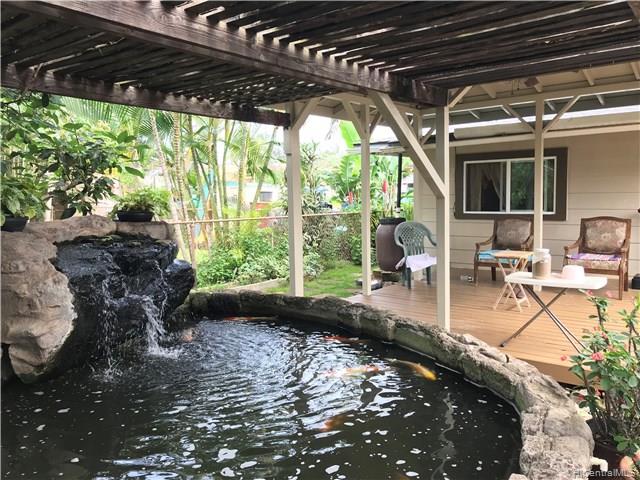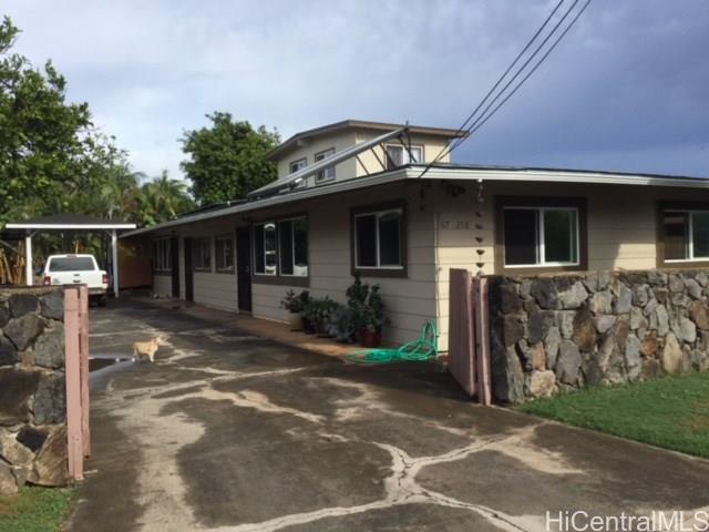 Large Duplex near beach. Unit 1 = 2 bedrooms, 1 bath. Unit 2 = 2 bedrooms, 1 bath with upstairs office. Ceramic tile flooring, ceiling fans, and stainless steel appliances in larger unit. PV Panels & Solar Water heater, owned, Parking for 3+ vehicles, Koi Pond with waterfall, nice covered lanai and sitting area. Part of the home is being used as a licensed care home. Great income property, live in one half, rent the other half… or – create a large Multi-Family Ohana Property! Current Tenant in the smaller unit pays $1, 995/month. Close to Beach access, bus lines, schools, Saturday morning Farmers Market and Historic Haleiwa Town. This rare property has many possibilities. Additional photos of Larger Unit, Koi Pond, Lanai & Carport coming soon!