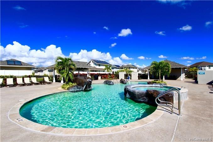 BEAUTIFUL 4 BEDROOM, 2.5 BATH, HOME LOCATED IN EXCLUSIVE KIPUKA AT HOAKALEI GATED COMMUNITY OVERLOOKING THE 15TH HOLE OF THE HOAKALEI GOLF COURSE. INCLUDES 32 PANEL PHOTOVOLTAIC SYSTEM UNDER HAWAIIAN ELECTRIC COMPANY’S NET METERING RULES, CENTRAL AIR CONDITIONING SYSTEM, SOLAR WATER HEATING SYSTEM, WHOLE-HOUSE WATER SOFTENER SYSTEM WITH REVERSE OSMOSIS WATER DISPENSER AT THE KITCHEN SINK, 2 VEHICLE GARAGE, 2 COVERED LANAI. BOTH LANAI FACE THE GOLF COURSE. KIPUKA AT HOAKALEI GATED COMMUNITY IS A FULLY FENCED, LANDSCAPED PROPERTY WITH POOL, JACUZZI, COVERED CABANA AREA AND BBQ GRILLS WITHIN THE PROJECT. OWNERSHIP ALSO INCLUDES ACCESS TO THE EXLUSIVE WAI KAI LAGOON, AND IS CONVENIENTLY LOCATED NEAR MANY GOLF COURSES, SHOPPING CENTERS, BEACH, SCHOOLS AND WALKING/JOGGING/BIKING PATHS.