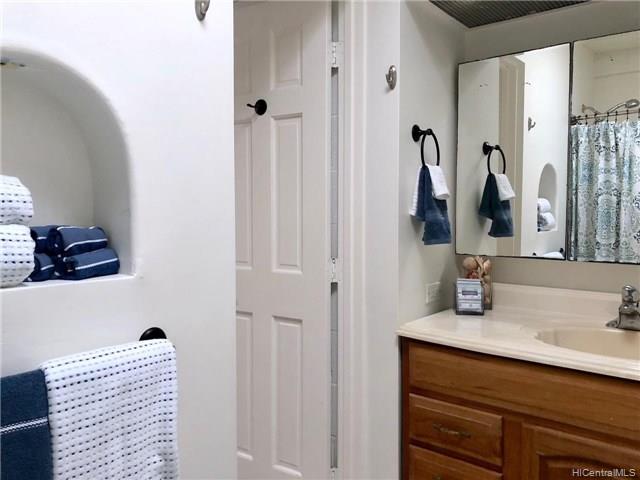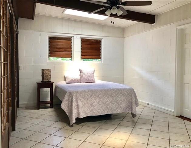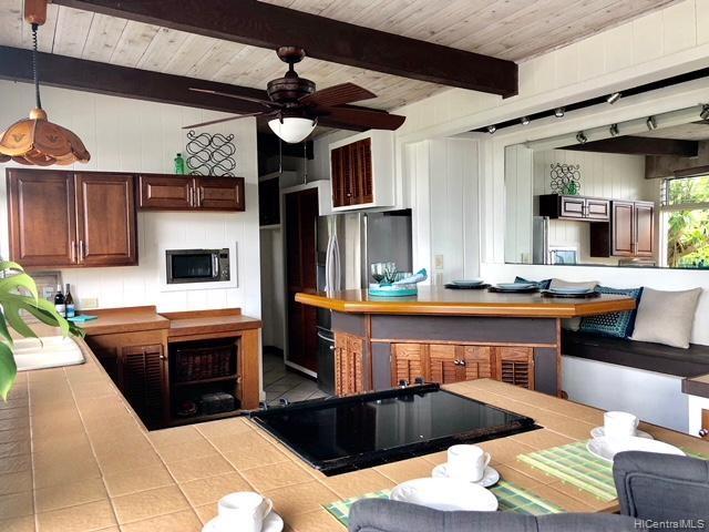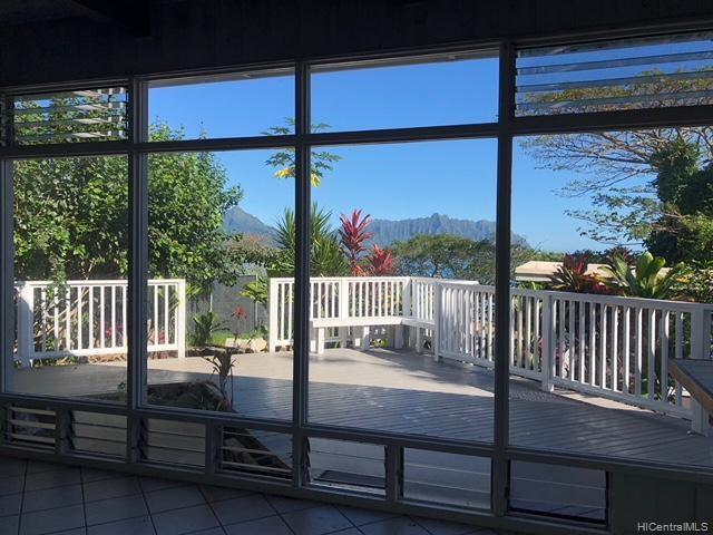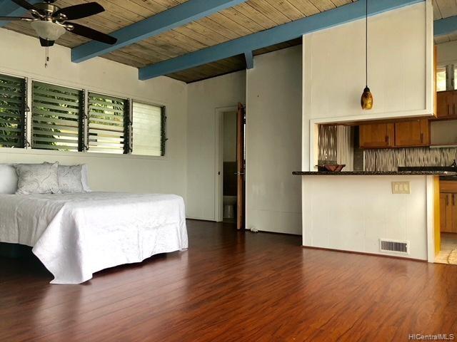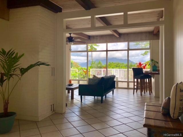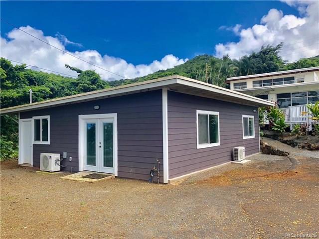 Perched above Kamehameha Hwy in peaceful Lulani Ocean neighborhood, this unique home offers a fantastic opportunity for cash flow while putting your design ideas to work! The large open floor plan on main floor has a kitchen designed for entertaining, 3 BR, 2 BA, an open office space and huge recreation area. The second level guest studio/master retreat with newer kitchenette has beautiful open views of the bay, tiled shower, long closet and separate entry. The soon to be completed, fully permitted, spacious ADU with 2 split ACs and full kitchen offers income potential! (Tax records do not reflect actual square footage; please use due diligence to confirm size.) Priced to sell (below recent appraised value) in Lulani Ocean- must see!
