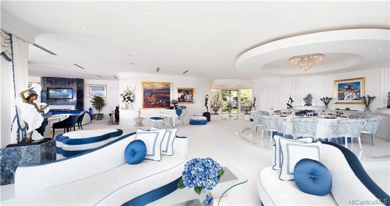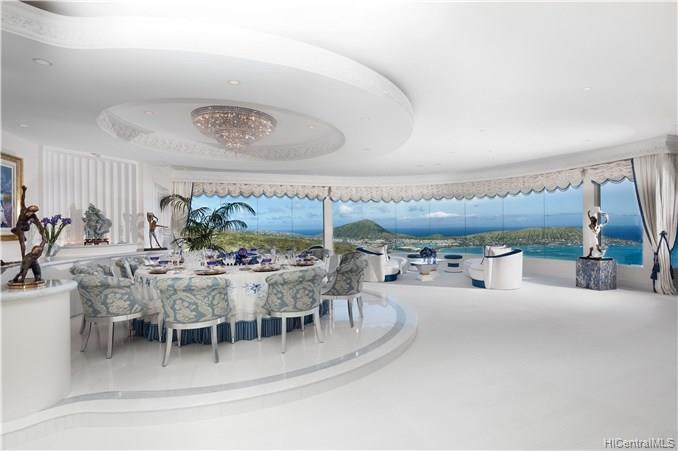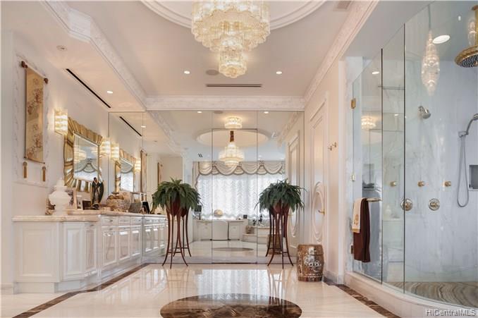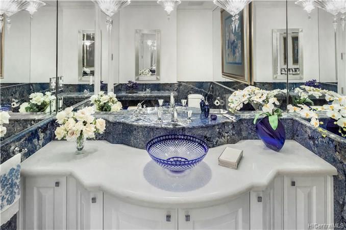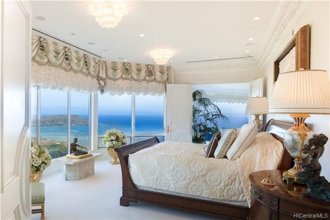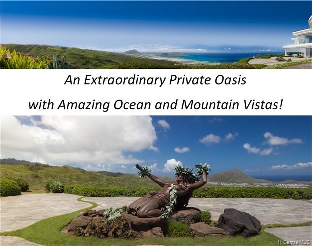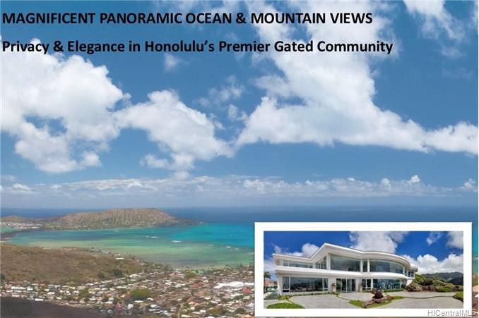 PANORAMIC OCEAN & MOUNTAIN VIEWS. HOLLYWOOD GLAMOUR & NEW YORK ELEGANCE – ONE-OF-A-KIND LUXURY RESIDENCE IN HONOLULU, HAWAII! Designed/built by Al Masini, famous TV producer and creator of “Entertainment Tonight”. 2-story hillside home offers unmatched quality in every detail. 5-star Resort atmosphere w tropical waterfalls, outdoor spa Jacuzzi, Biometric entry elevator, personal gym & 4-car garage. Hand selected exceptional stone/marble/elegant finishes of the highest standards. Facing East and South, this spectacular dream home offers security in a prestigious Gated Community.