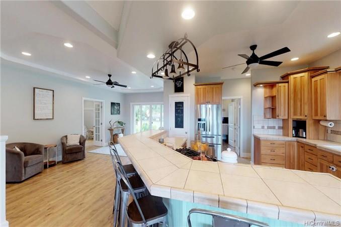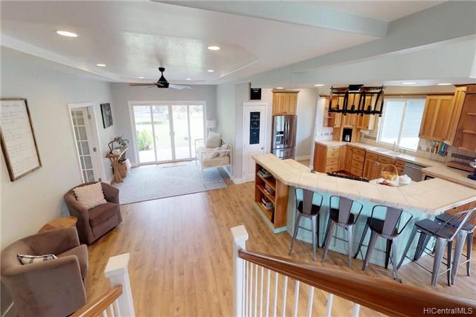 わずか数分離れてワイピオ渓谷を形成し、約 2.5 エーカーの敷地に位置し、この家は高品質の構造で構築されて終了します。海の景色とプライバシーは豊富であり、この思慮深く、快適なアイランド スタイルの家の中でカジュアルなエレガンス感が輝いています。1 階では、広々 としたキッチンとダイニング ルームとリビング ルームを見渡すバーエリアの周りをラップのオープン フロア プランを提供しています。2 つのクローゼット、フルバス、追加ボーナス ルーム、半分のお風呂と大型ランドリー ルーム大寝室は階下にメイクアップします。上の階は、ウェットバー、大聖堂の天井とスクリーニングでラナイ島で大規模なファミリールームに開きます。ファミリー ・ ルームは、2 つのベッドルーム、フルバス 2 階 4 つのベッドルームと 2 つのフルバスを作るどちらかの側に開きます。