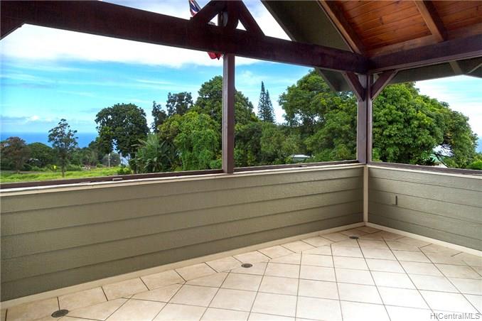 Just minutes away form Waipio Valley and nestled on approximately 2.5 acres, this home is built with high quality construction and finishes. Ocean views and privacy are abundant and the feel of casual elegance shines throughout this thoughtful and comfortable island style home. The first floor offers an open floor plan with a spacious kitchen and a wrap around bar area that overlooks the dining room and living room. A large master bedroom with two closets and full bath, an additional bonus room, and large laundry room with a half bath make up the downstairs. The upstairs opens up to a large family room with a wet bar, cathedral ceilings and a screened in lanai. The family room opens up to two bedrooms and a full bath on either side making up four bedrooms and two full baths upstairs.