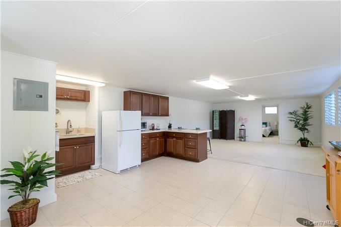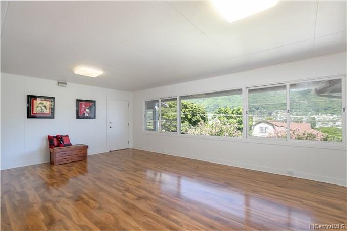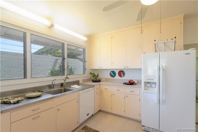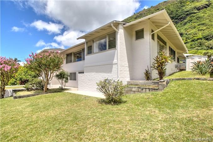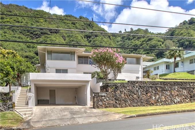 Thoughtfully renovated, mid-century styled home in peaceful Manoa neighborhood retains its custom charm but has been updated to enhance your living experience! This 5 Bedroom, 3 Bath Residence consists of over 3, 200 sq. ft. of Interior space with 4 Bdrms / 2 Baths upstairs & spacious 1 Bdrm / 1 Bath (920 sq. ft.) area w/kitchenette downstairs. The 2 separate entrances make this space perfect for guests, in-laws or adult children. Upgraded with new interior and exterior paint, plumbing and electrical, laminate flooring, ceramic tile, kitchen cabinets and countertops in the downstairs kitchenette. This large, 8, 197 sq. ft. Lot features a covered lanai for entertaining, tranquil waterfall with koi pond and 2 storage sheds. Enjoy the expansive views of the mountains and city lights.