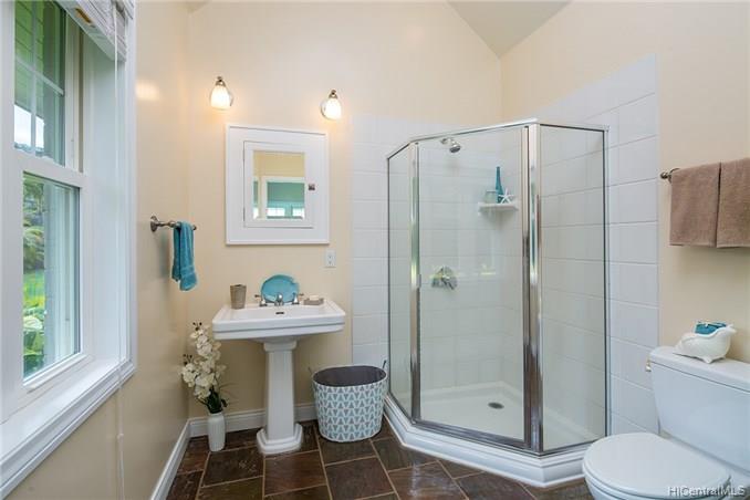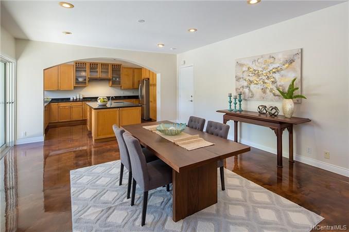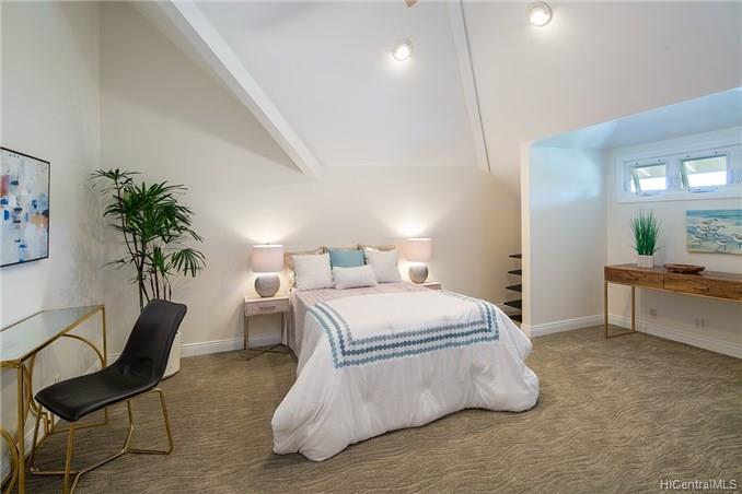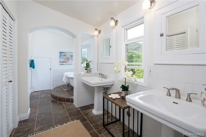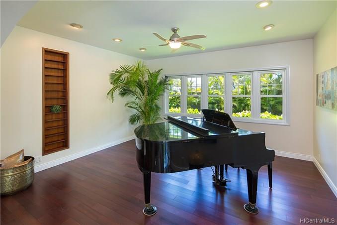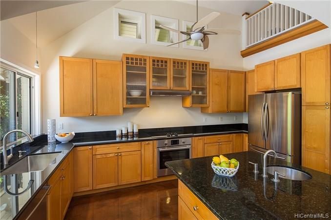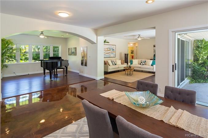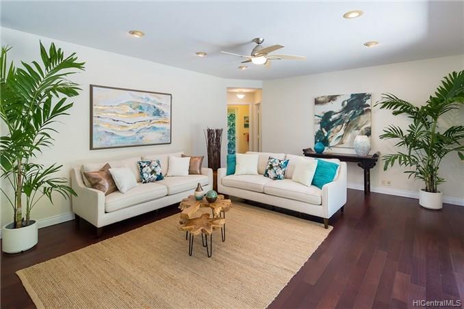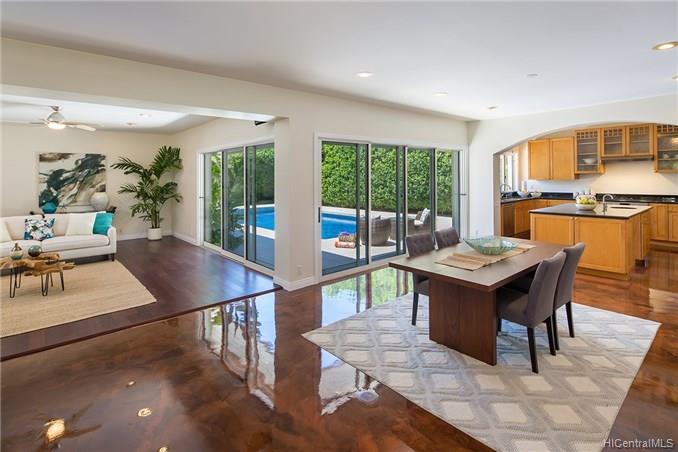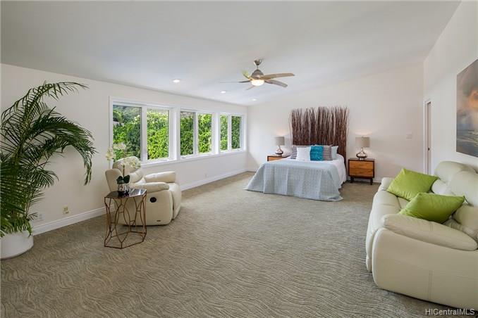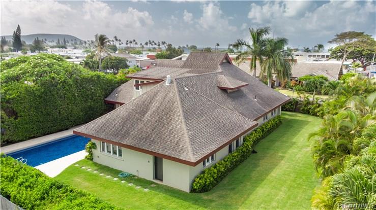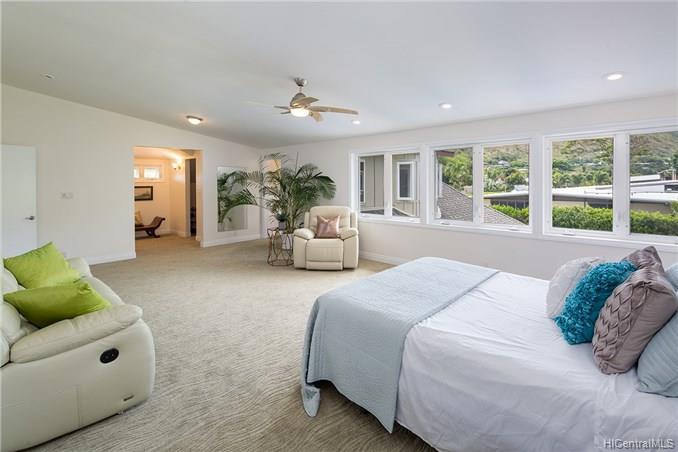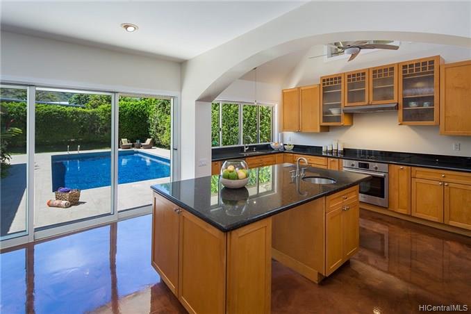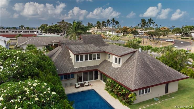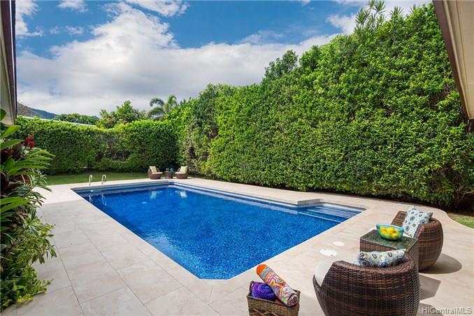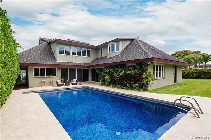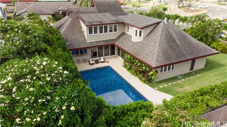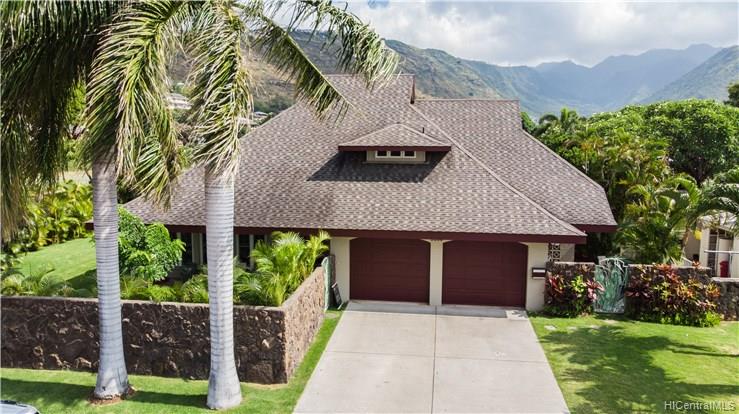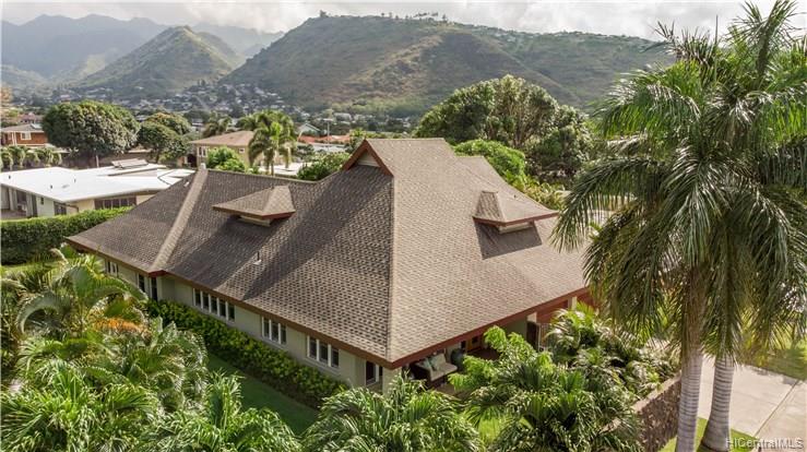 Award winning design by Mark Lively – Wow! Surrounded by an attractive moss rock wall this private gated 5 Bedroom+ home is a real classic w/unrivaled quality & character. Built in 2002 for comfortable Island Style living – loads of room to spread out & enjoy. Aina Haina shopping Center & Beaches nearby. Dramatic mountain & valley views are yours from spacious second floor master bedroom w/bonus flex room/5th bedroom/nursery. Details include high ceilings, lots of natural light & cooling tradewind breezes from large windows, 3 bedrooms on main level, beautiful flooring, new carpet. Entertain poolside in surrounding & lush tropical garden setting on large level grassy lawn of 11, 495 sf with room for volleyball and island style fun.