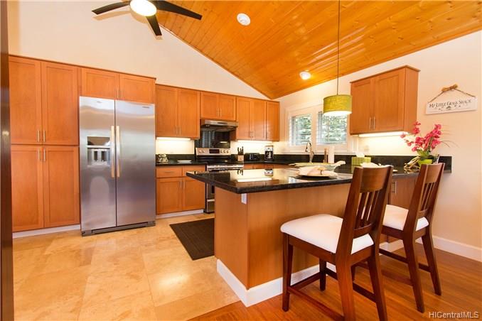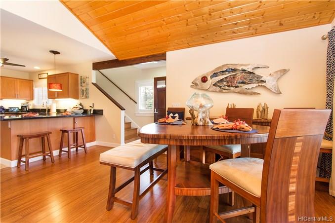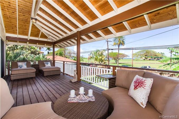 Fantastic modern 2-home property in worlds famous Haleiwa town, boasting natural wood interiors with open beam construction, large open floorplan with lots of natural light. Amazing income potential-live in one and rent the other. Conveniently located in the heart of Haleiwa directly fronting Ali’i Beach Park, kick off beach for the legendary Triple Crown of Surfing competitions. This property is being sold together with TMK 1-6-6-003-045-0002. Tons of parking and separate car port for your trailer or boat.
