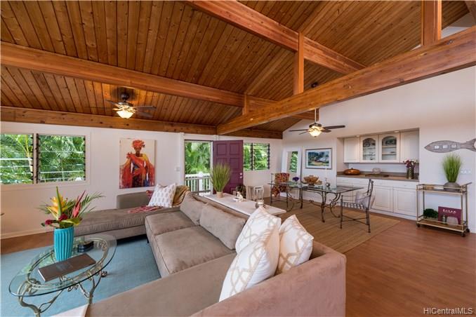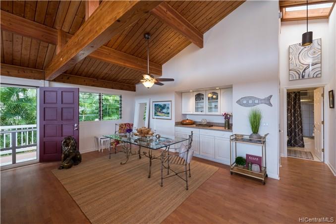 OFFERING CREDIT of $100,000 (100K ) to Buyers for UPGRADES. This OCEAN VIEW home currently set up as 3 rentals: Main home 3/2 upstairs and a separate entry 2/2 that can be opened to a single family home of 5 beds and 4 baths. This property has a studio apartment over a 3 car detached garage, plus another 1 car garage. Calculate the price per square foot for comparisons. This is a lovely property with NO grass and LOW maintenance care inside and out with chosen materials. Professionally landscaped, freshly painted and in great shape. Just two blocks to Lanikai Beach.