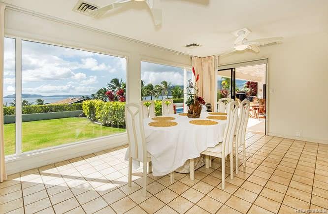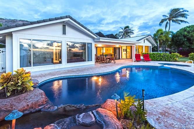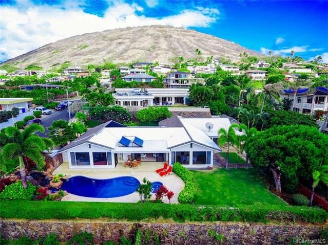 Location, location, location!! Enjoy the captivating and majestic ocean views as you enter this nicely designed and open 5 bedroom 3 bath home situated on a large level lot overlooking Maunalua Bay and Diamond Head. Beautiful landscaped grounds including a heated pool with swim current and spa, delighful water falls and accepted night lighting that is sure to embrace the peaceful and serene feel of this most intitmate property. There is an electronic gate, two car garage, plenty of storage and photovoltaic panels for water heating. End your day watching the daily spectacular sunsets in the comfort of your own home.