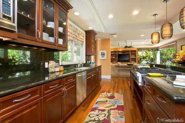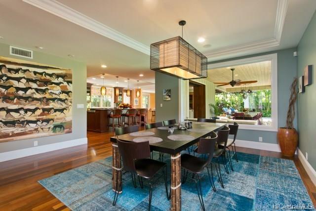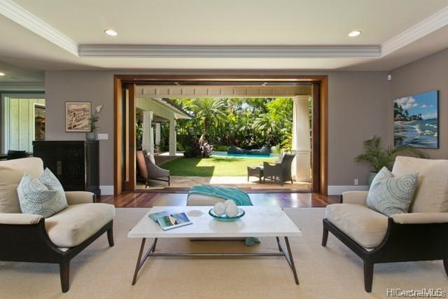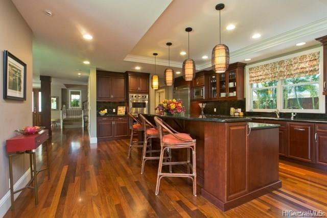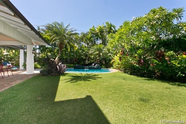 Welcome to the “Kolohala Oasis”, located on Kahala’s premiere cool and wide street just steps to a gorgeous beach and great surf. Close to shopping, dining, movie theater, post office, bank, tennis, golf, the Kahala Hotel and Waialae Country Club. This Tom Nicholson designed home is perfect for a family that loves to play as it has a beautifully landscaped yard, great pool, and a custom “lava” rock hot tub. Also features a spacious kitchen with dining counter, separate guest quarters, a built-in BBQ grill, garden box area, and children’s playhouse. Boasting 5 bedrooms and 5.5 baths and offering serene privacy, this oasis is a prized property.