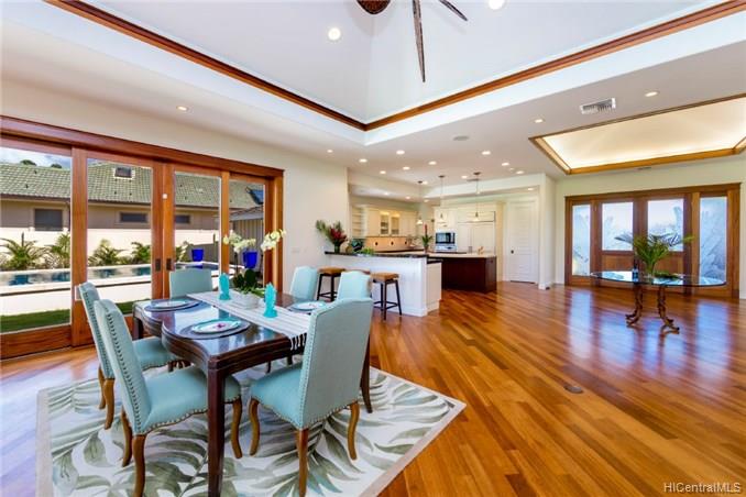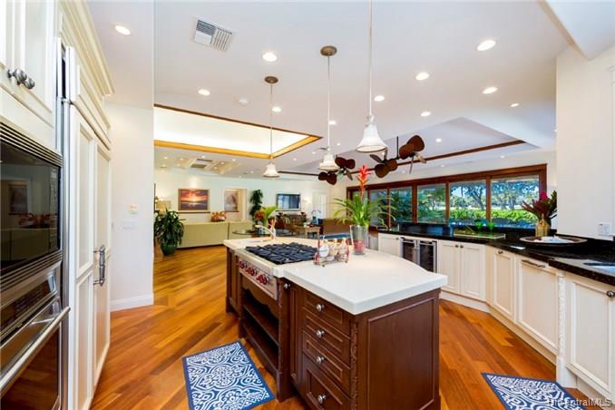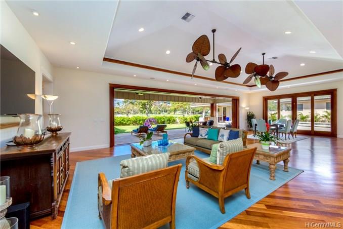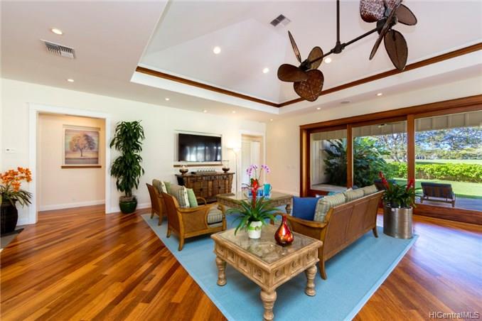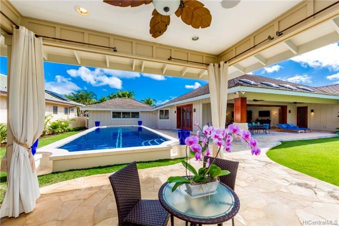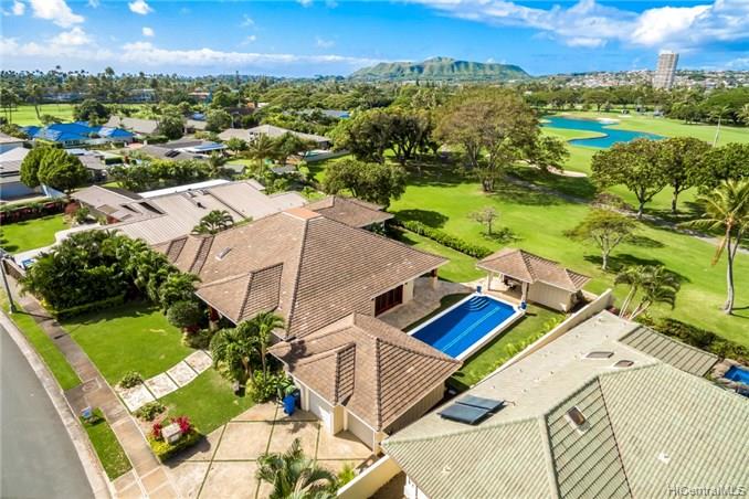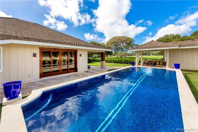Grand Golf Course luxury retreat with direct Waialae Country Club & Golf Course frontage. Step inside and find breathtaking attention to detail; soaring high ceilings throughout, an Italian-inspired Chef’s kitchen, imported woods, stone, granite and more. Pocket doors open to a spacious covered lanai, separate island cabana, and resort-sized pool, all overlooking the 11th fairway of world-famous Waialae Golf Course, home of the Sony Open. Modern, open floor plan is anchored by a Great room combining living, dining, and casual seating spaces, creating the perfect place to entertain. A large master suite with golf course views includes a spa-like master bath. In all, this 5-bedroom home spanning 5,362 sq.ft. of indoor/outdoor living area sits on a 15,716 sq.ft. tropically landscaped lot, creating the perfect place to escape and call your personal island paradise.