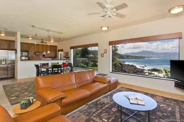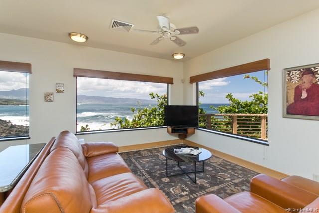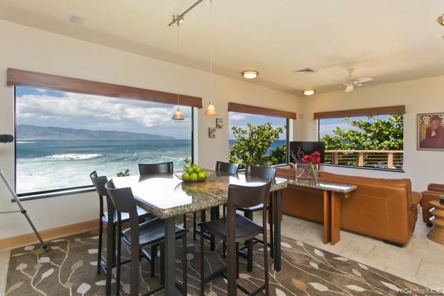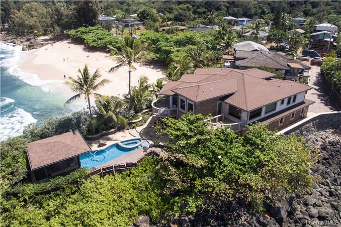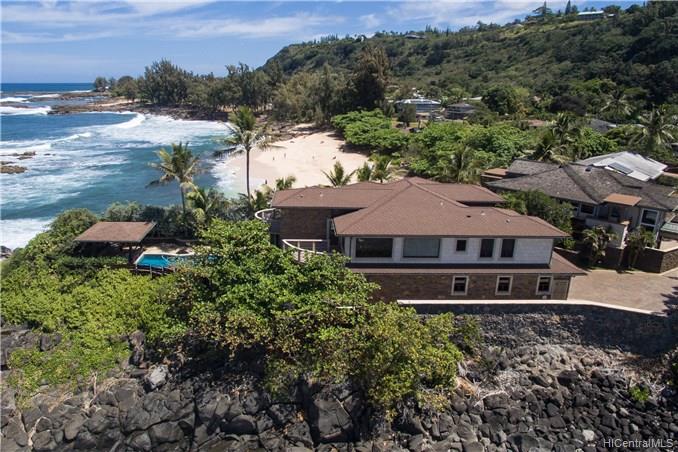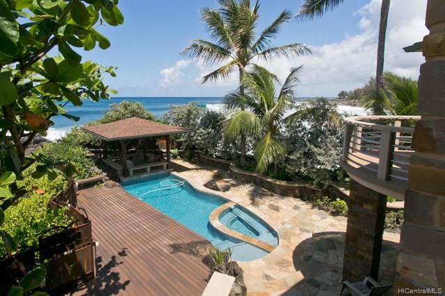Breathtaking Oceanfront Waimea Bay views in this one-of-a- kind custom home. Located near Historic Haleiwa Town and iconic surf spots – you can enjoy prime views of the Eddie Aikau Surf competition from the comfort and luxury of your own living room. Enjoy your stunning pool with Jacuzzi and large deck with Cabana. This private luxury Oceanfront estate comes with your own private access to Three Tables Beach. High grade submarine metal materials and concrete walls complete this solid custom home.