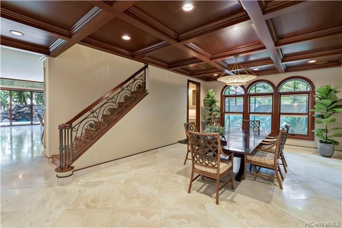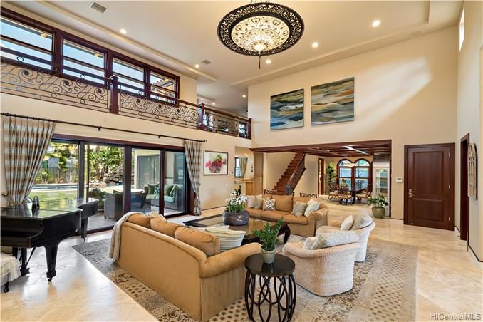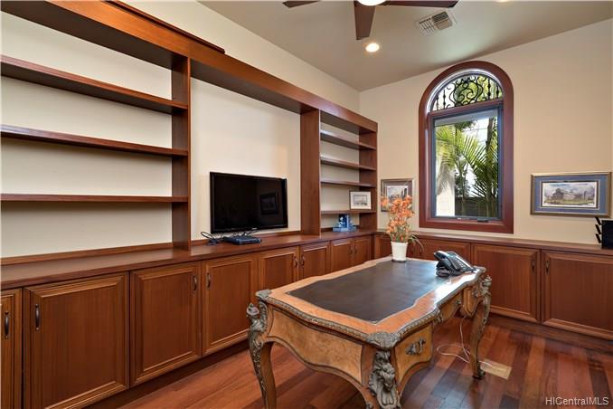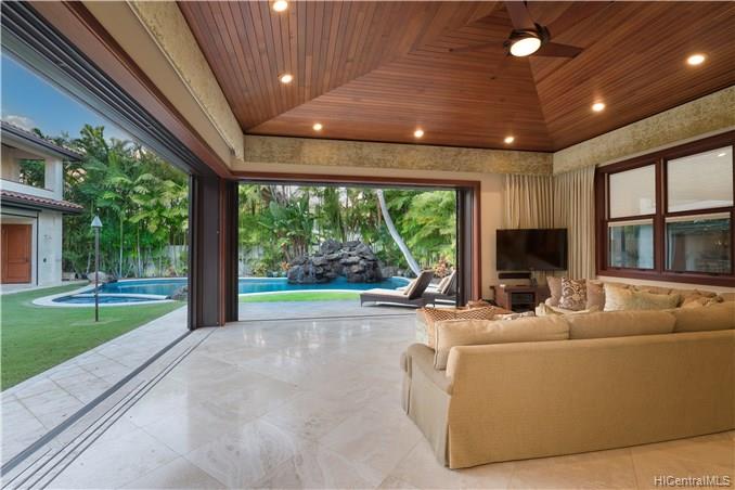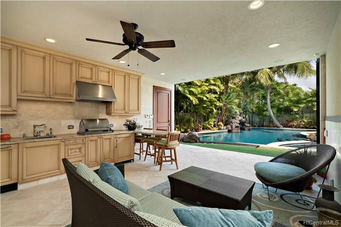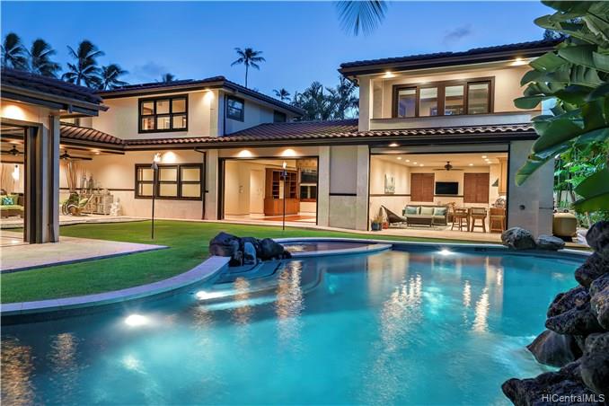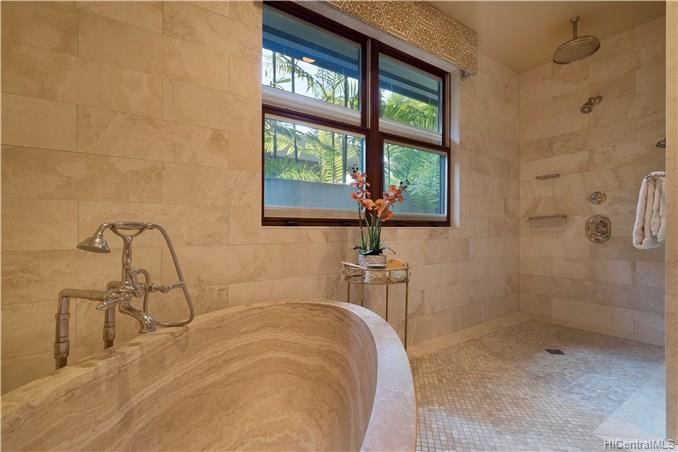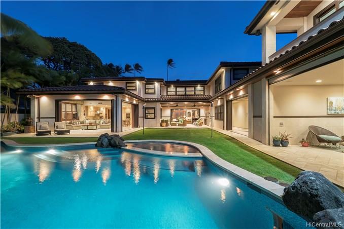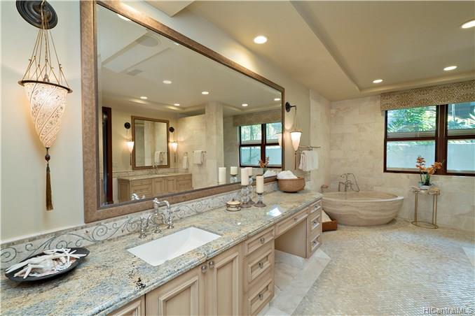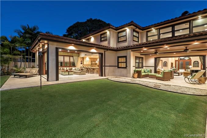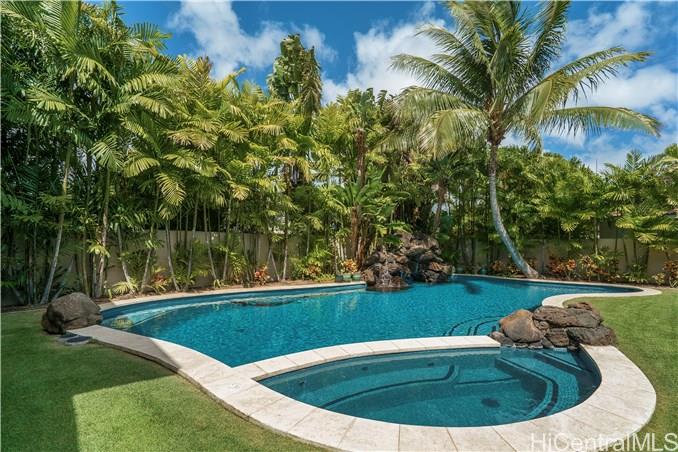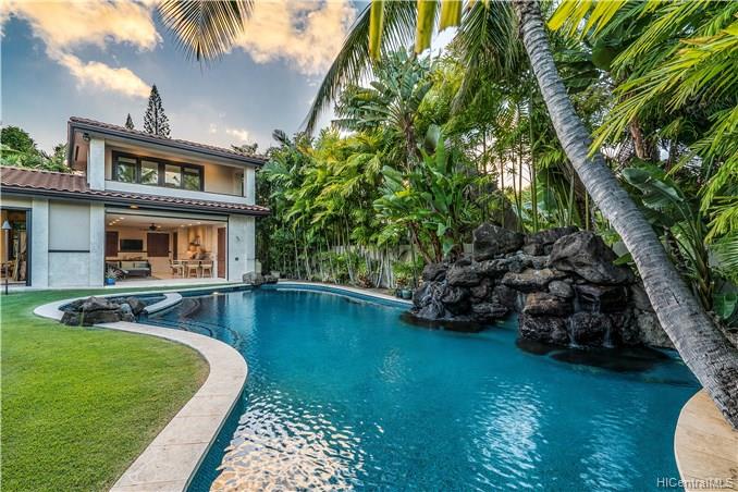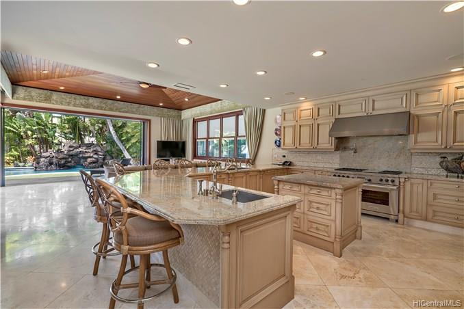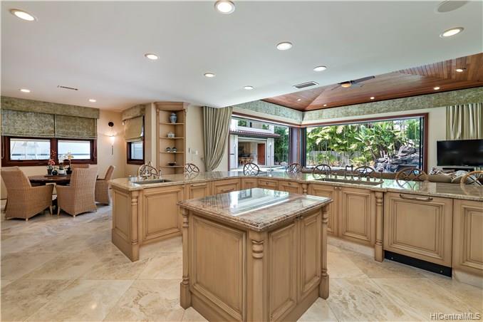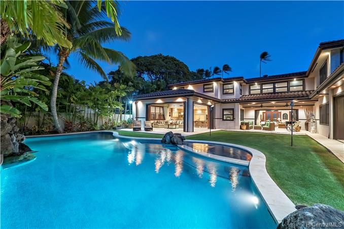 Well-built custom designed luxury home on Kahala Avenue offers the finest materials and workmanship. The stone facing home features include: a large Master Bedroom Suite, 4 generous size BR suites, Gourmet kitchen with the finest cabinetry, high end appliances, Extra high ceilings in the Foyer and LR, Fortuny lighting fixture in Foyer, LR and Dining Area, Custom made Medallion in foyer, Travertine stone and hard wood flooring throughout, 3 motorized pocket sliding doors, double paned Pella windows with built in shade, coffered ceiling in dining, master suite, family room and BBQ area, Upper level private sitting area with fridge, in ground salt water pool with a water fall and Jacuzzi, BBQ, entertainment area, energy savings with 44 solar panels and Cree LED lighting throughout, water softener, generator, Double metal gate entrance to a 2 double car garage finished with Mahogany garage doors, Custom security camera and security system and a Professionally landscaped yard.