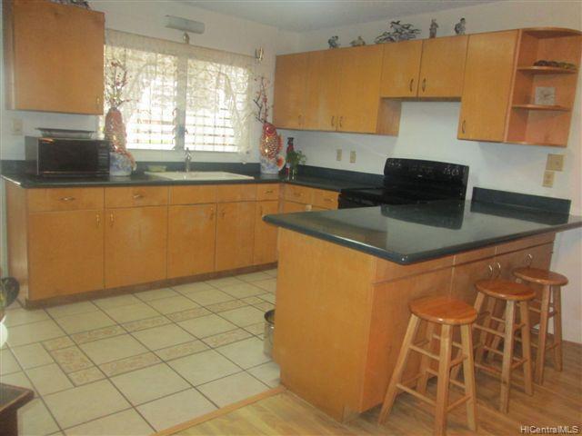 Single level home with 5 bedrooms/3 baths in Waipahu Estate. Potential foster home or multi-family for 2 bedrooms with separate entrance is tenant occupied. Monier tile roof, corian countertops, wood laminate throughout the house and ceramic tile in kitchen/bathrooms. Additional bathroom and one bedroom have no permits. Convenient to Waikele Shopping Center, along bus and easy access to freeway.