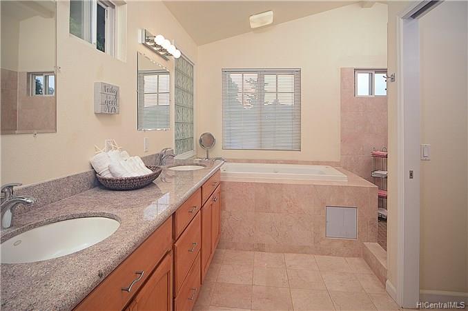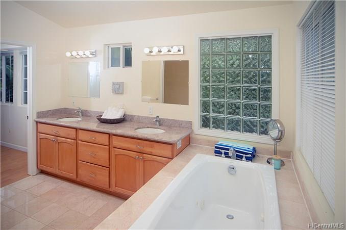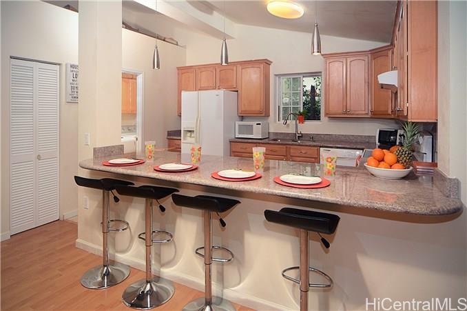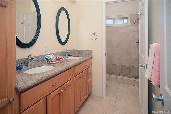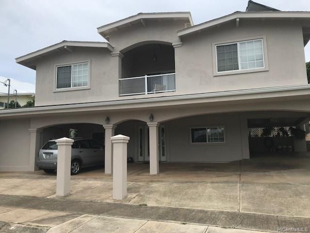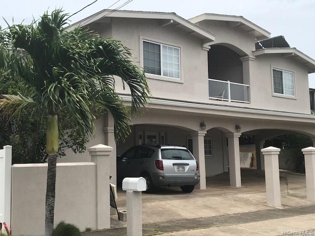 Spacious family home in Foster Village. 5+bdrm/den/4 bath with three entrances that offers many options for multi-generational living. Private second level master suite with jetted tub, french doors and private lanaiw/ views to the backyard orchard. Longon, Banana, Avocado, Citrus, Mangoes and more. 4+ onsite parking spaces, storage, and a basketball court. New exterior paint, marble flooring, granite throughout with a large walk in pantry.