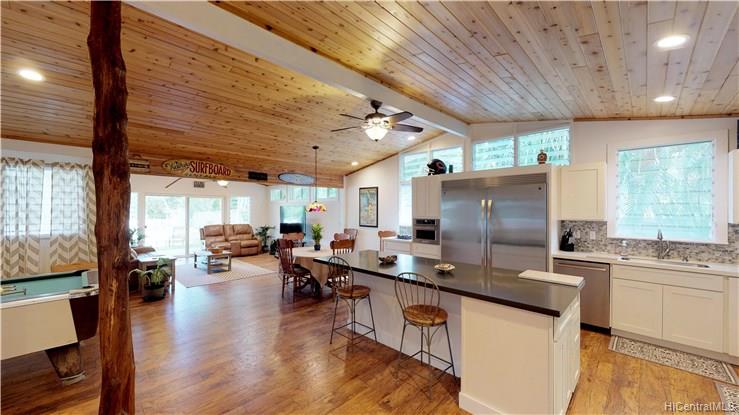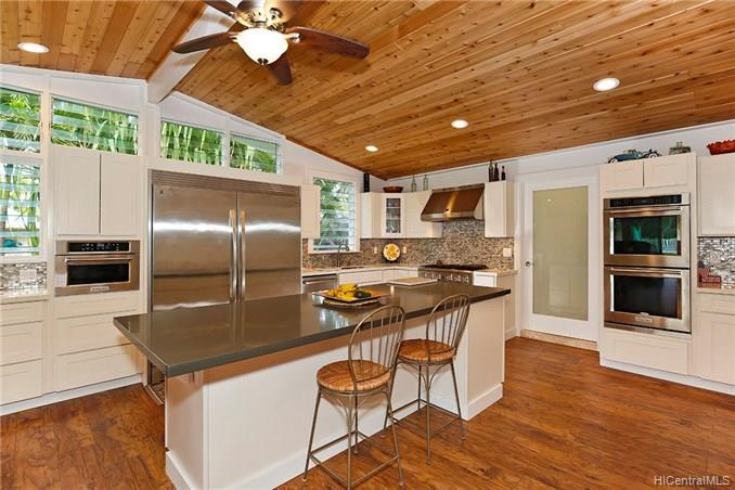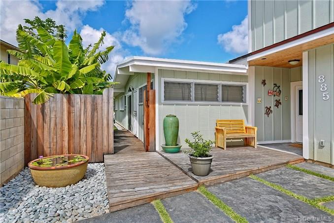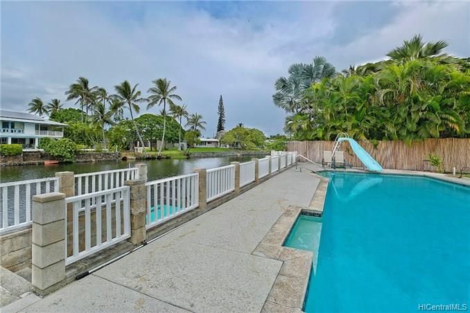 Welcome to 885 Akiu Place with it’s airy open floor plan. Beautifully anointed for the entire family or multiple families. The home comes with quartz counter-tops, solid wood cabinetry, laminate floors, stainless steel appliances & cedar ceilings throughout. This waterfront home was updated in 2016. Huge living and great room for all your entertaining needs. Newly built “Legal” 2 bedroom, 2 bath upstairs unit. Featuring granite counter-tops, Thomas Ville cabinetry, Travertine flooring, cedar ceilings, bamboo wood flooring with it’s own full size washer & dryer. Upstairs provides privacy without the apartment feel. Enjoy your favorite beverage poolside along side of the Enchanted Lake’s canal. Located at the end of the cul-de-sac on this 11,795 sq.ft lot. Check out our Virtual Tour!