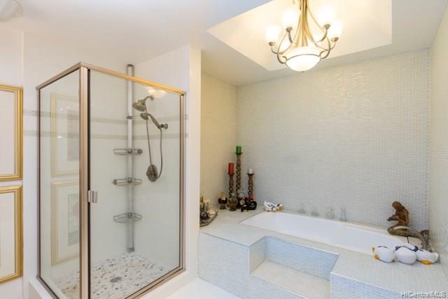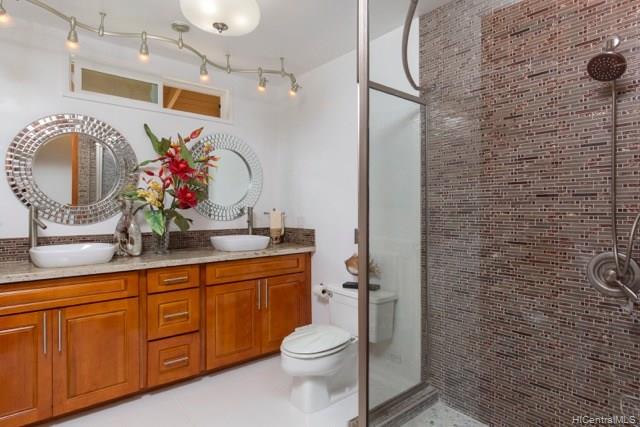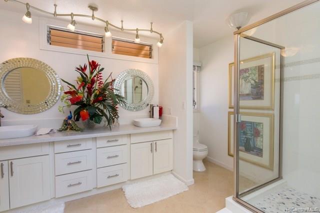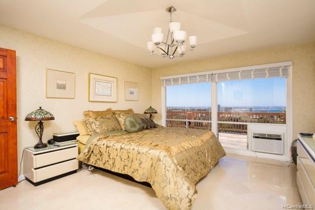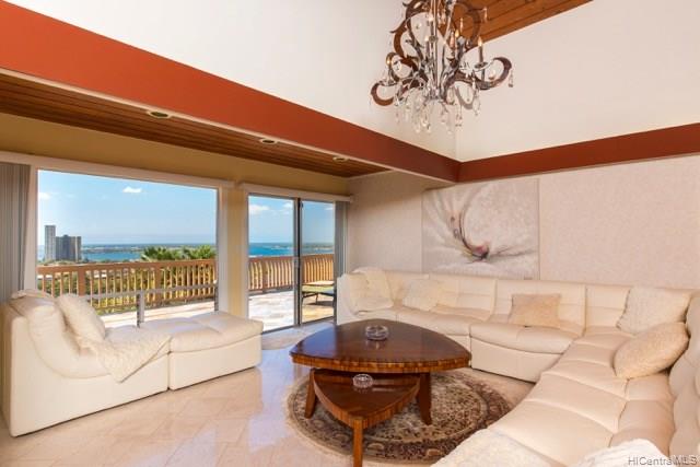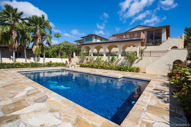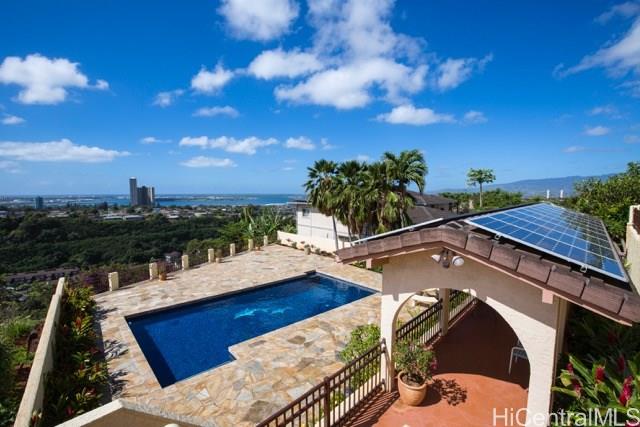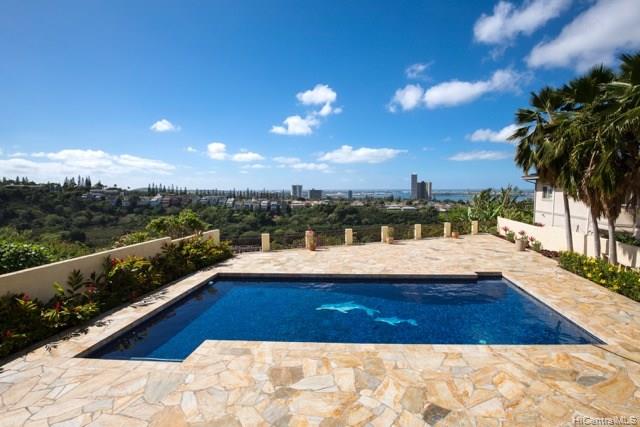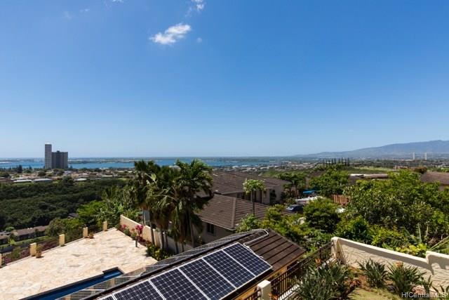Rarely available home in Royal Summit. This Multi-Generational split-level home offers functional 3/2 main level with vaulted ceilings and a 3/1 lower level. Your family will love the spacious rooms and open layout. Master includes a large Jacuzzi soaking tub, double sinks, shower and large walk-in closet. Lower living area has separate entrance, ideal for entertaining, in-laws, or rental. Every level offers exceptional views of Pearl Harbor, ocean and sunsets. One level below the home is a gazebo area overlooking the large custom swimming pool and BBQ deck area. This amazing one of a kind gem and large home offers a lot of possibilities for your family.