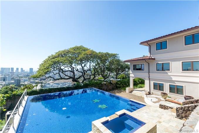 Stunning ocean, Diamond Head and Waikiki sweeping views are just the beginning of the list of things to enjoy with this truly luxury home. Built in 2009 equipped with many welcomed upgrades including high ceilings, a spacious floor plan, pool, 4 car garage and additional guest parking. Guest quarters, recreation room, and wine room located on the lower level with separate entrance. Great for entertaining. Walking distance to Punahou School through a private walkway.