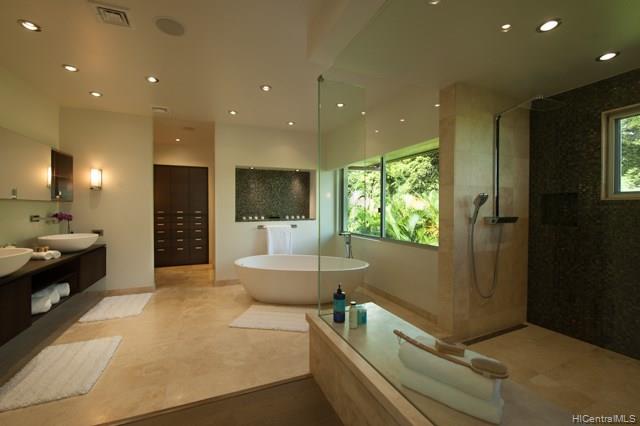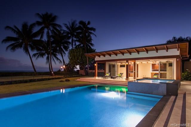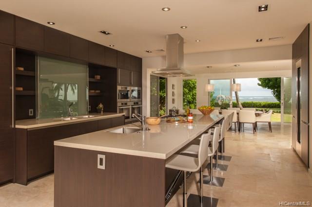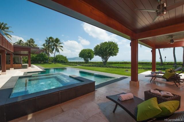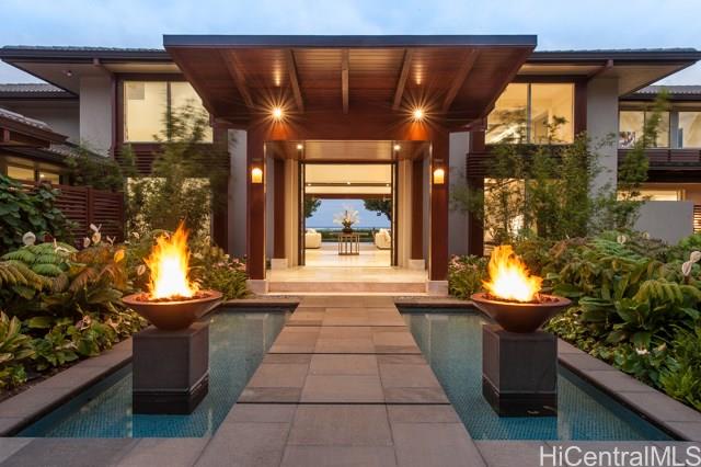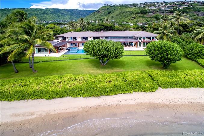 NIU BEACH ESTATE. Stunning, sophisticated & modern 1.43-acre oceanfront estate w/ 185 linear feet of beach frontage, tennis court/tennis pavilion, sparkling pool, Jacuzzi & pool pavilion + lush, tropical landscaping. 7 bedrooms: 3 master suites, 3 bedrooms & a Caretaker suite w/kitchen & private entrance plus 8.5 baths by Agape of Italy. Sleek, gourmet SieMatic kitchen has a 14-ft island & proff appliances. Multiple entertaining areas open to expansive seaside lanais w/ mesmerizing views. 3 car garage + large motor court. Bring your surfboards; this magnificent estate is a must to see!