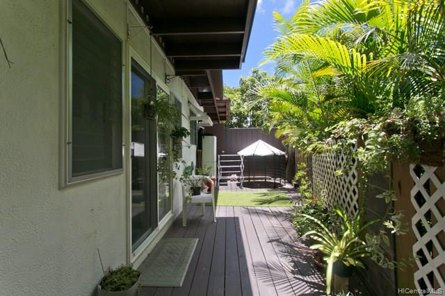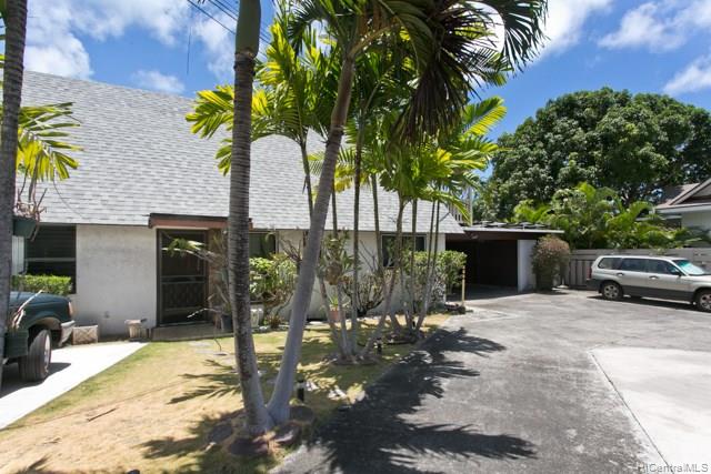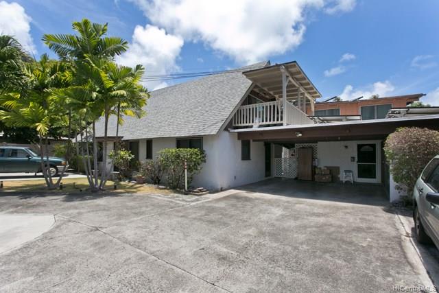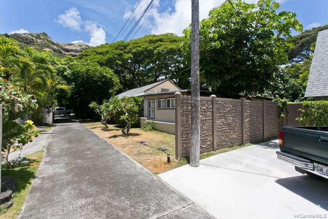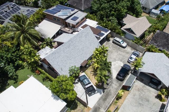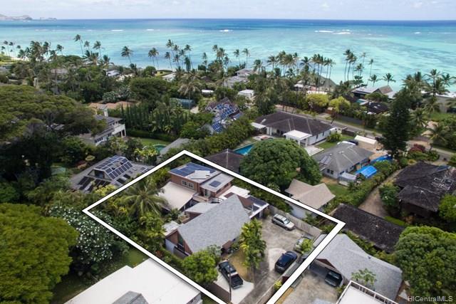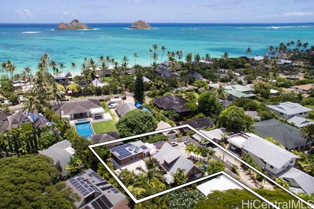 Lanikai – private flag lot consisting of a 3/2 main dwelling and a detached ‘Ohana’ dwelling containing a 2/1, 1/1 and studio living areas; the latter units are rentals. There are ample parking for at least 6 + cars. This is a desirable beachside community and subject is situated near the southeast boundary of the neighborhood.