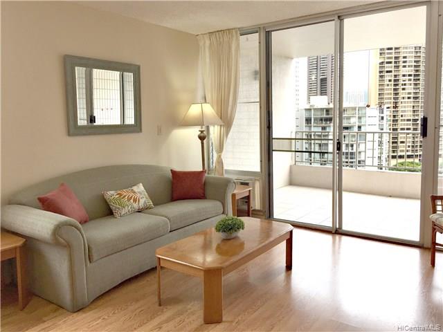 Rarely available corner/end unit with extra window in Summer Palace. Enjoy the views of the Waikiki Skyline, Ala Wai Canal, yacht harbor, mountains and ocean from the spacious covered lanai. The unit has been updated and comes furnished. This pet friendly (verify) building is close to Ala Moana shopping center, beaches, restaurants, and bus routes. Wonderful amenities include a rooftop sundeck, pool, outdoor cooking area for additional entertaining, and guest parking. Reasonable maintenance fee includes electric! This won’t last long.