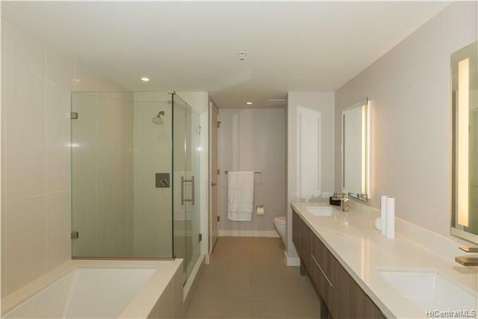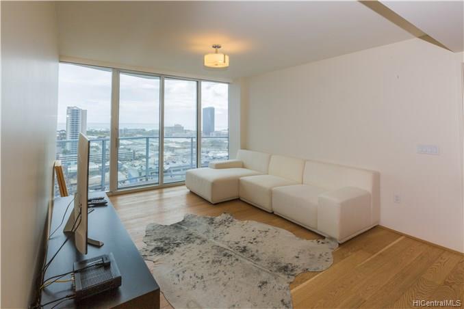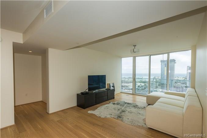 Panoramic ocean and city views from the spacious 2BR, 2BA in one of Honolulu’s most desirable upscale buildings.Convenient city living living at it’s best! Located within minutes from Downtown, Ala Moana, Ward Village, Waikiki, easy access to and from the freeways. Impressive amenities to include spacious exercise room, sprawling pool deck with cabanas & BBQ, guest suites, men’s & women’s saunas and lockers, party room with kitchen, a dog park, movie theater, karaoke room, guest parking and so much more!!! The lease end 4/16/2019