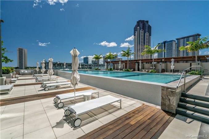 Immaculate high floor 3-bedroom end unit with panoramic & breathtaking views of ocean to Downtown Honolulu. 2-side by side parking stalls #4120 & #4121. Contemporary city living: Bosch appliances, Studio Becker cabinets throughout, engineered wood flooring and much more! Come and join the fortunate few and experience condominium living at it’s finest with impressive amenities…pool, 2-spas, exercise room, sauna, massage room, karaoke room, recreational/party room with full kitchen, BBQ area, dog park, 2-guest suites & more! Subject to existing tenant’s lease till September 30, 2018 at $5,000/mo.