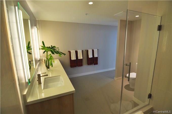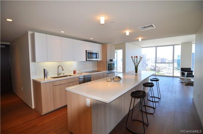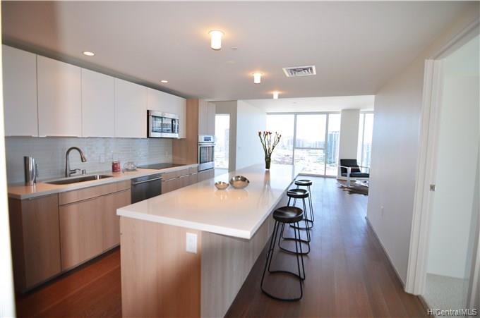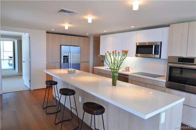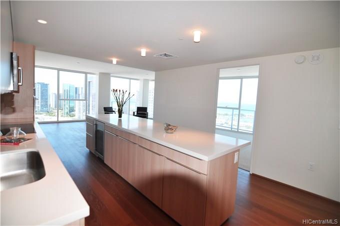 Seller says sell! Best Buy in the Bldg! This is a must see, luxury condo in the heart of Kakaako ready for move in! This beautiful, open high floor DH/ocean corner 3-bedroom, 2bath, 1, 520 square feet + 117 sf open lanai – unit showcases stunning ocean, Diamond Head and mountain views. New and fresh, this is the ideal place to make your home in urban Honolulu. Unit features Studio Becker cabinets, Stainless Steel Bosch Energy Star Appliances, polished quartz countertops, and premium grade flooring. Convenient and excellent location near great restaurants, shopping, movies and much more. Building offers resort-like amenities include guest suites, fitness center, yoga room, multimedia/karaoke room, owner’s lounge, heated pool, sauna and BBQ cabanas. Low maintenance fee. Unit comes with two side-by-side standard size parking stalls conveniently located near the elevator banks