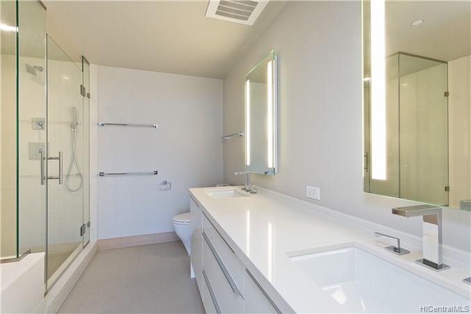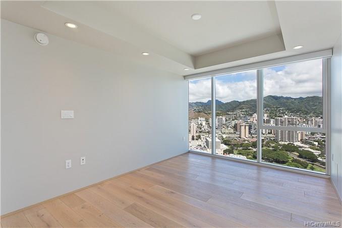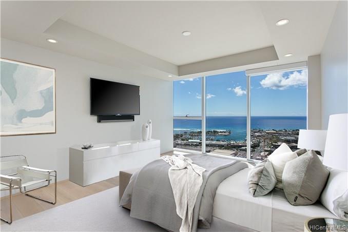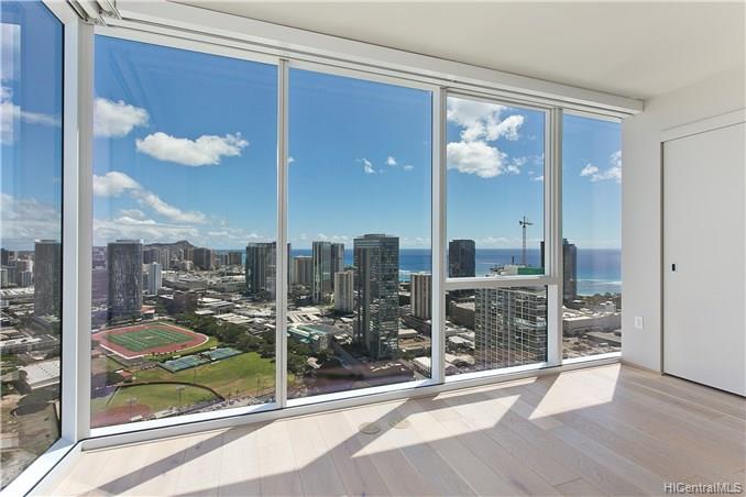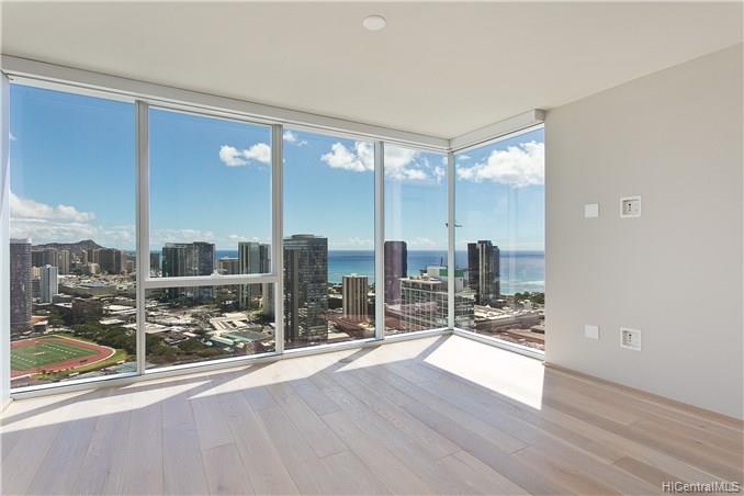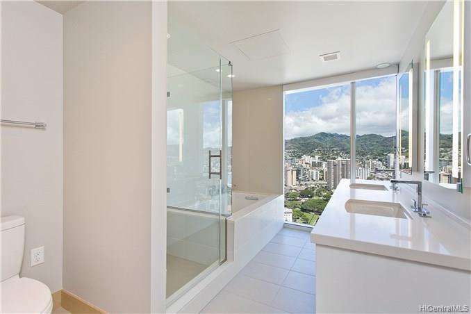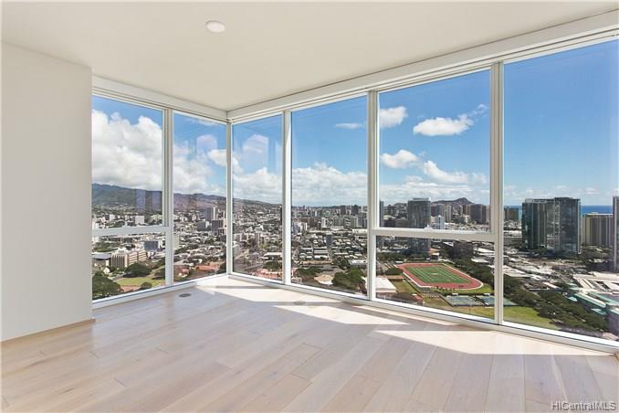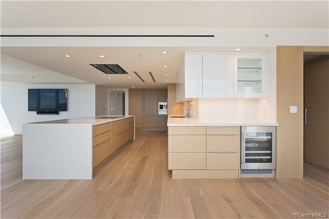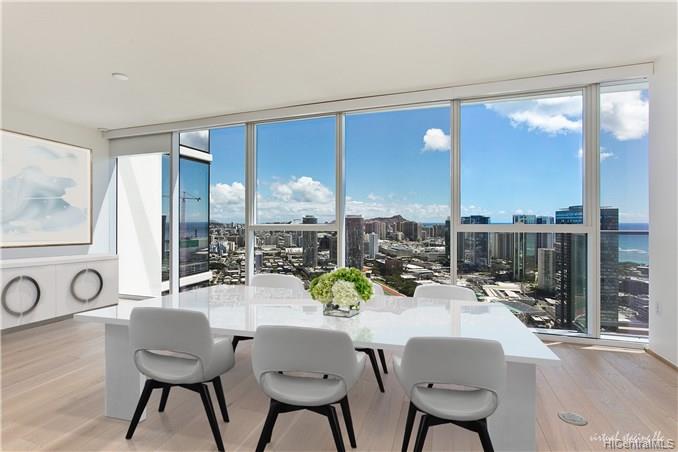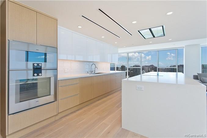 Truly one of Honolulu’s new premier condominiums. This exquisite, “03” and “05” model has been combined into a unique one-of-a kind floorplan. With sweeping panoramic Diamond Head, ocean, and mountain views. This private sanctuary with 2662 SF of living space and a 154 SF open lanai has upgraded interior finishes and Gaggenau appliances. Separate living, dining, and family rooms, 4 bedrooms featuring a large master suite, 3.5 baths and laundry room. Already fitted with closet systems and automatic shades, this remarkable, never lived-in, move-in ready home includes 4 parking stalls and a storage room.