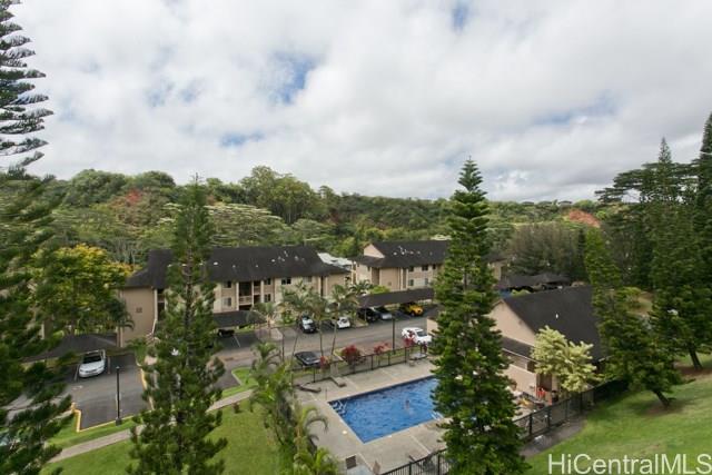 Great 3BR 2BA 2PKG in Beautiful cool Launani Valley. This home boasts Vaulted Ceilings, Nice Loft/ bedroom with plenty of storage. Overlooking Terrace’s large swimming pool for your family’s enjoyment! Quick access to freeway, Mililani Town, Movie Theaters, Wal-Mart, restaurants and more.