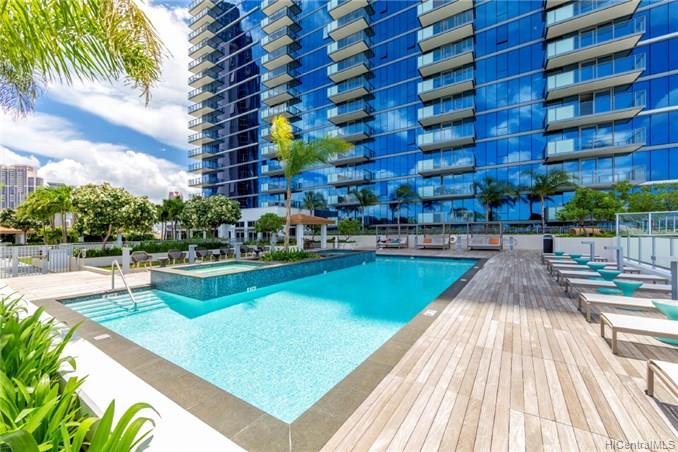 A new building in a very convenient location, close to downtown, Honolulu harbor, restaurants and Kakaako new development. This unique larger one bedroom unit is located in the boutique side of the building with diamond head and a peek-a-boo ocean view (only 4 unit in the building with this floor plan). The assigned covered parking and deeded storage locker are on the same floor. Resort like amenities. Unit is being sold furnished. Tenant occupied, subject to current lease expiring July 31, 2018.