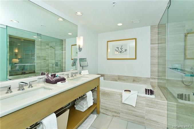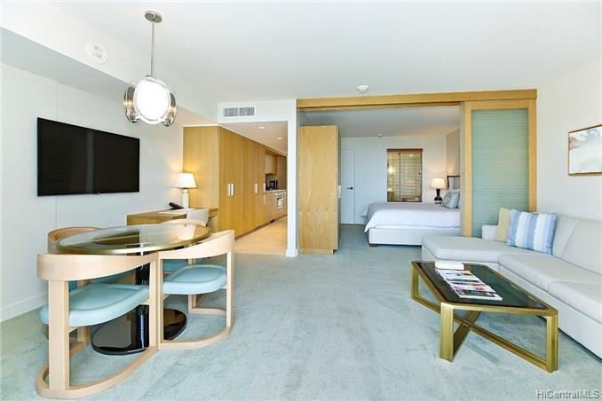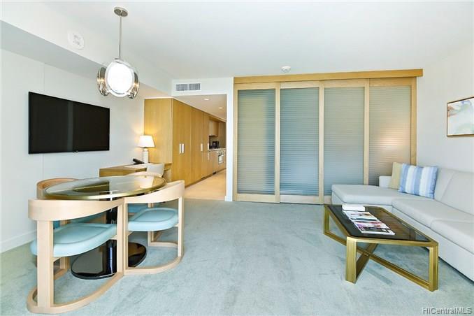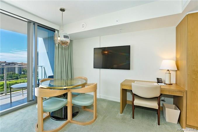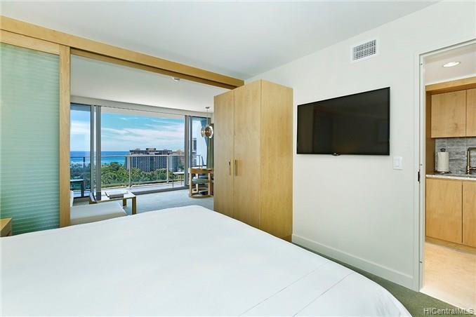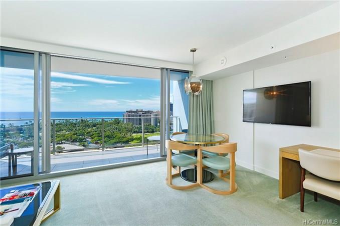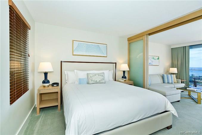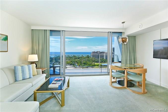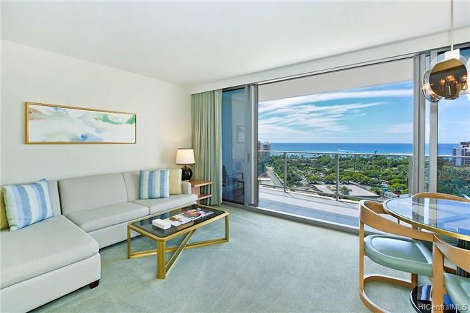 Luxury hotel condominium with a large lanai. View is fantastic with the ocean and Fort DeRussy Beach Park. The unit is fully furnished one bedroom and comes with wonderful amenities such as valet parking, spa, restaurant, gym, and concierge. Floor to ceiling windows, Hardwoods, marble and hand-crafted millwork, luxurious kitchenette featuring including Miele appliances. Washer and dryer is in unit. Updated pictures will be ready on 2/20/2018.