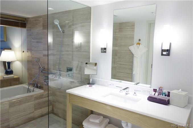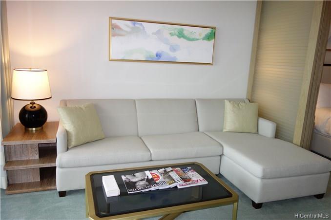Larger studio with panoramic ocean and city view at luxurious Ritz-Carlton Waikiki. Fabulous amenities and fantastic services. Fully furnished with upscale appliances with granite counter top