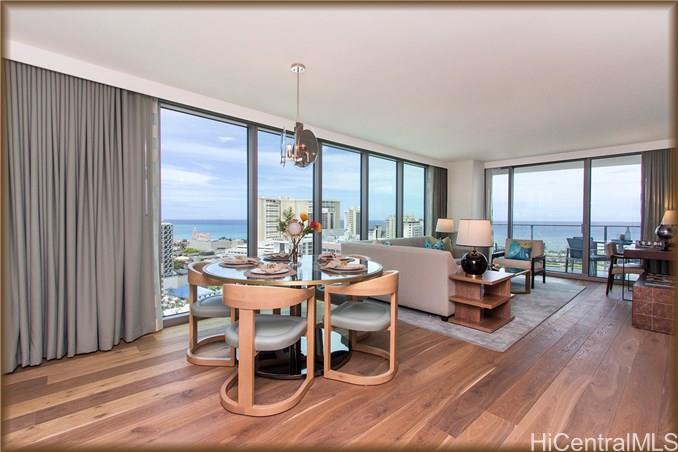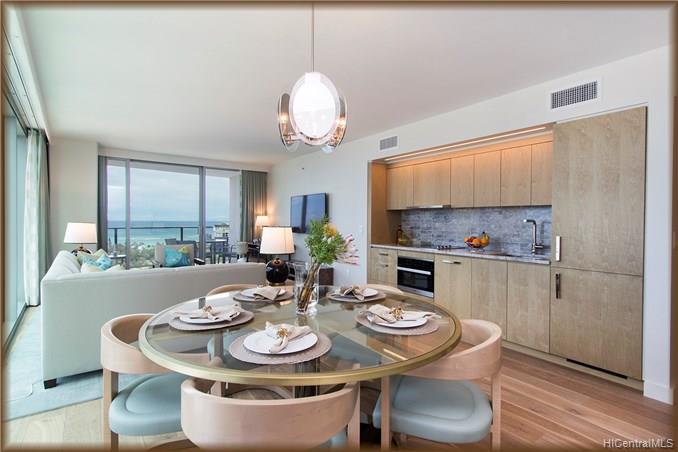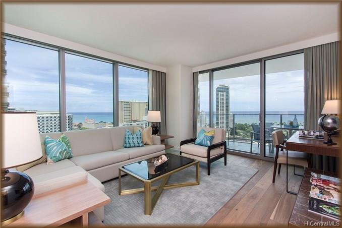Enjoy ULTRA-LUXURY RESORT LIVING in the brand new Ritz-Carlton Residences Waikiki!! This prime corner end 2 bdrm / 2 bath unit offers BREATHTAKING VIEWS of Fort DeRussy Park and the sparkling blue ocean. Fully furnished with world class amenities including an infinity pool, fitness room, spa, concierge, valet parking, fine restaurants “Sushi Sho” “BLT-Market” “Dean & Deluca” & more. DON’T MISS THIS AMAZING OPPORTUNITY!!