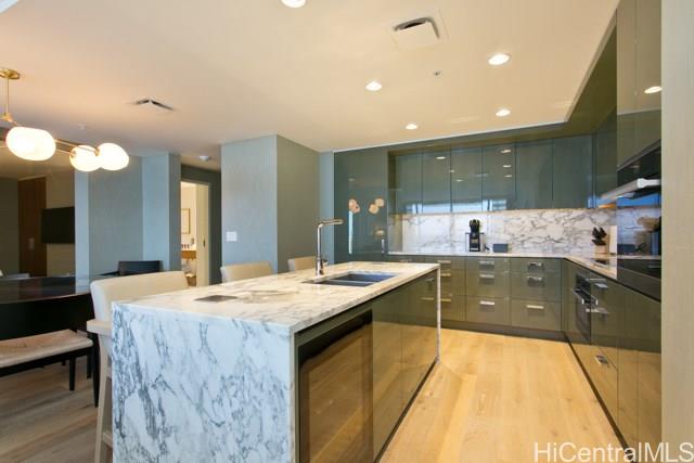 Where modern luxury and elegance meet island living, this exquisite 3 bedroom residence is fully furnished and located on the “premier level” of Waikiki’s newly completed luxury branded hotel, the Ritz-Carlton. The residence features 1600 s.f. of specious living area with high-end interior finishes plus a nearly 300 s.f. lanai where you’ll be able to enjoy a breathtaking panoramic view of Hawaii’s ever so blue Pacific Ocean. The hotel’s prestigious services and amenities are readily available with concierge service, valet, a state of the art fitness center, pool area, as well as a full-service resort spa. A cafe & deli, gourmet market place & wine bar and fine dining restaurant truly cater to everyone’s appetite!