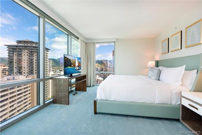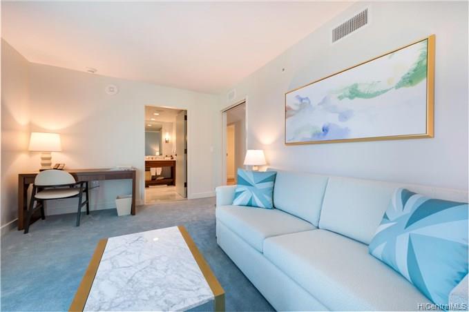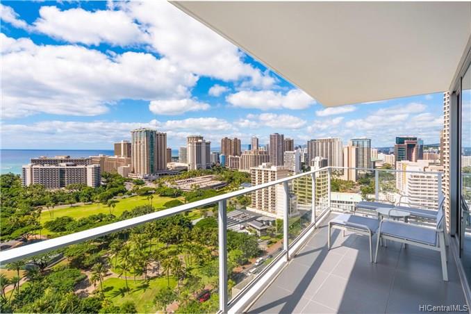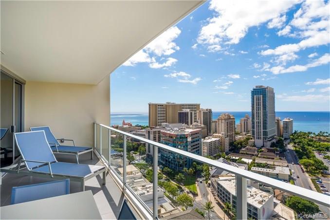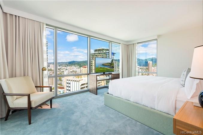 Enjoy luxury living at world famous The Ritz-Carlton Residences Waikiki Beach! This unique split level 4 bedroom + den with 5 bathroom suite in high floor unit comes fully furnished and has beautiful ocean view over Fort DeRussy park. Top notch amenities include infinity pool, concierge, valet parking, and a full service spa. Included in purchase are upscale appliances, granite counter tops, and travertine tile flooring.