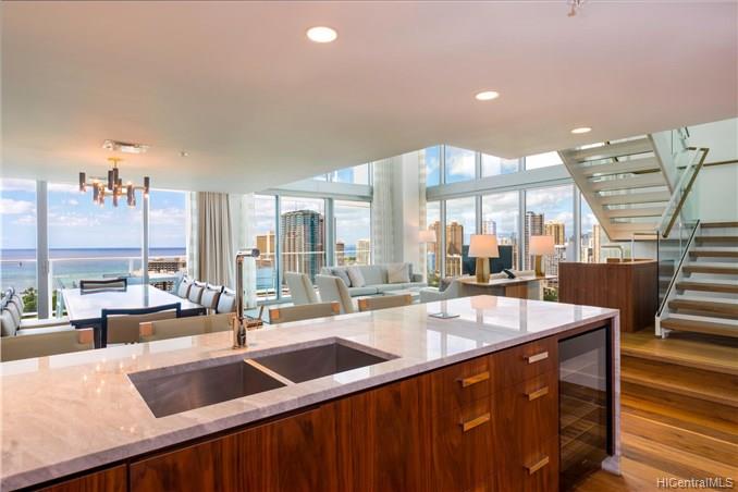 世界有名なザ ・ リッツ ・ カールトン レジデンス ワイキキ ビーチに贅沢な生活をお楽しみください!この独自のスプリット レベル 4 ベッドルーム + デン 5 バスルーム スイート高層階単位で完全に家具来る、フォート デロシー公園を一望する美しい海です。一流の設備には、フルサービス スパ、係員付きパーキング サービス、コンシェルジュのインフィニティ プールがあります。購入に含まれている高級な家電製品、花崗岩のカウンター トップ、トラバーチン タイルの床。