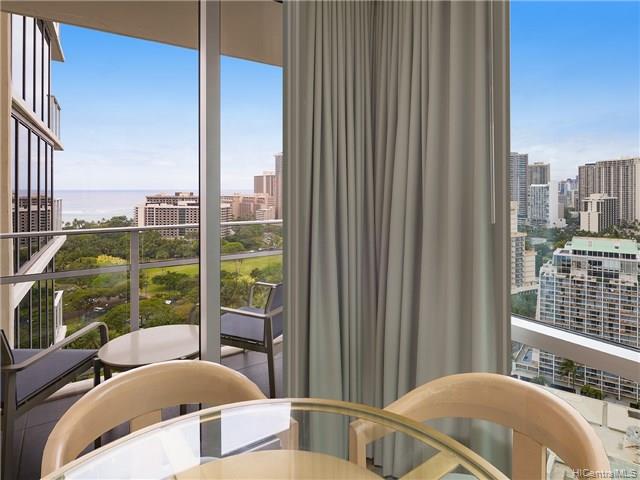 One-of-a-kind luxury studio with sliding doors between the bedroom and living area, creating the sense of a 1 bedroom residence. Unique and bright with windows on 3 sides of living room, boasting ocean, city and mountain views. This is a fantastic opportunity to own an incredible home in the finest luxury condo hotel in Honolulu – The Ritz-Carlton Waikiki – with access to five-star services and amenities. The 2nd tower is almost completed, which will allow for access to more incredible amenities.