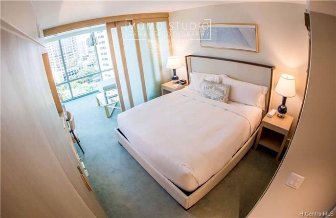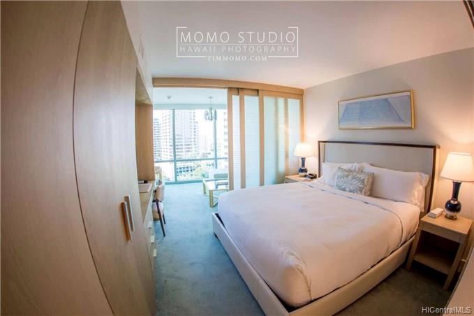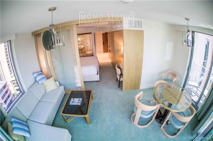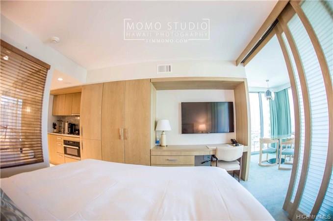 Enjoy luxury living at The Ritz-Carlton Residences Waikiki Beach Tower 1 Hotel / Condo! This corner-end studio has panoramic ocean and city view. Sliding door allows for privacy between living room and bedroom area. The unit comes fully furnished with all linens & kitchenware. Top notch amenities include infinity pool, concierge, valet, parking, and a full service spa.