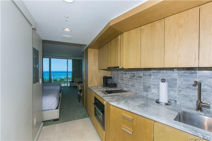 Enjoy Luxury living at this FiveStar Ritz-Carlton Waikiki Residences. Excellent studio with ocean views at Tower 1, upscale appliances, granite counter tops, sleek cabinetry, fully furnished with linens and kitchenware, and washer/dryer. Owner has access to private owner storage to keep personal belongings between stays. Free Valet parking for owners. Resort amenities include infinity pool, concierge, valet parking, and a full service spa. Excellent opportunity to become an owner at one of the most desirable locations in Waikiki.