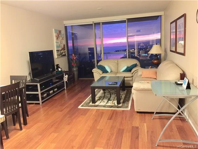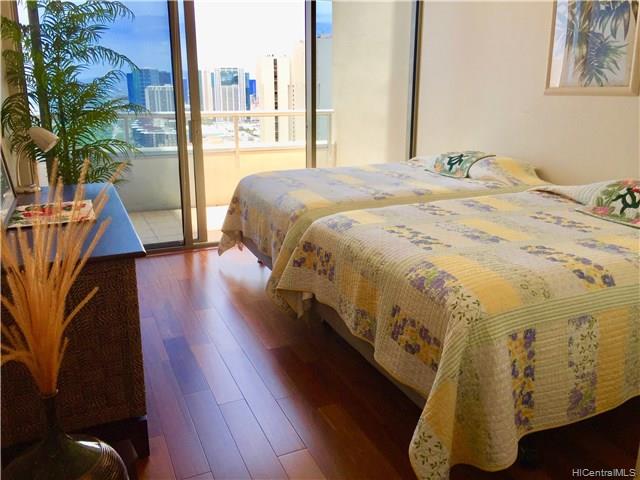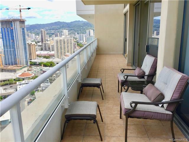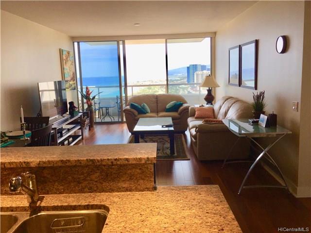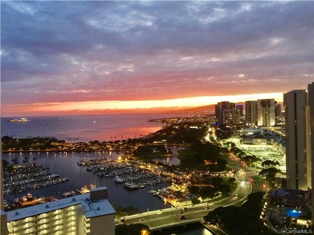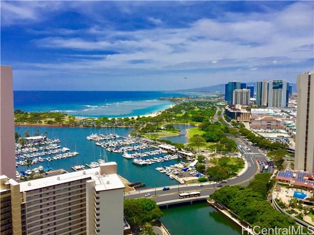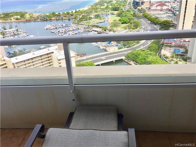 Preferred “04 stack” unit. Full glass sliding doors in living room and both bedrooms offer beautiful views from the entire unit! Special feature is a one of kind full size Lanai (210 sq ft) which runs the entire length of the unit! Luxury condo living on the edge of Waikik! Great views overlooking the ocean, Ala Wai Harbor and Ala Moana Park! Conveniently located within short walking distance to Waikiki shops and restaurants, Ala Moana Center and Ala Moana Park. Top of the line appliances and resort style amenities to enjoy; heated pool, jacuzzi, sauna, fitness center, BBQ cabana and media/meeting room. 24 hour security and on-site manager. The unit is in excellent condition; to be sold in “As Is” Condition.